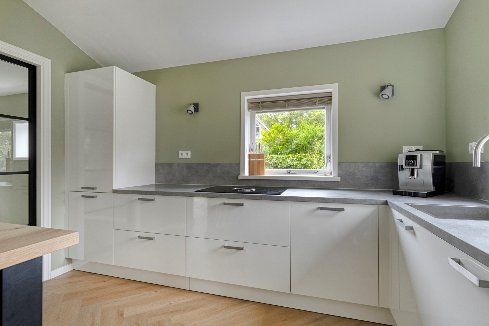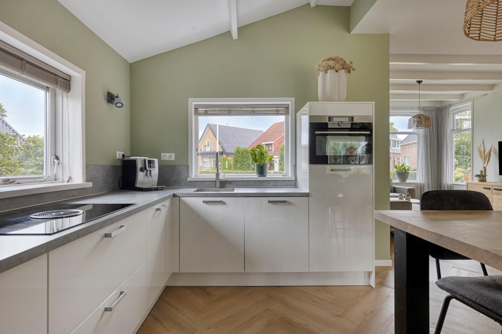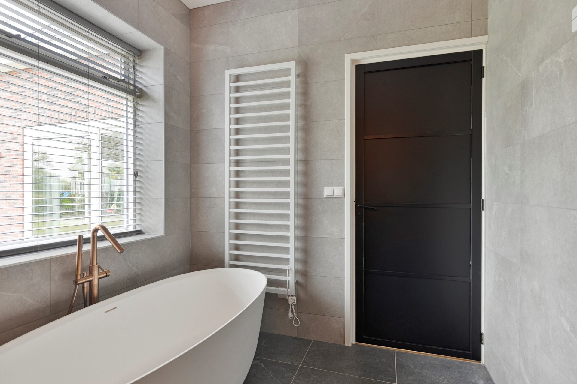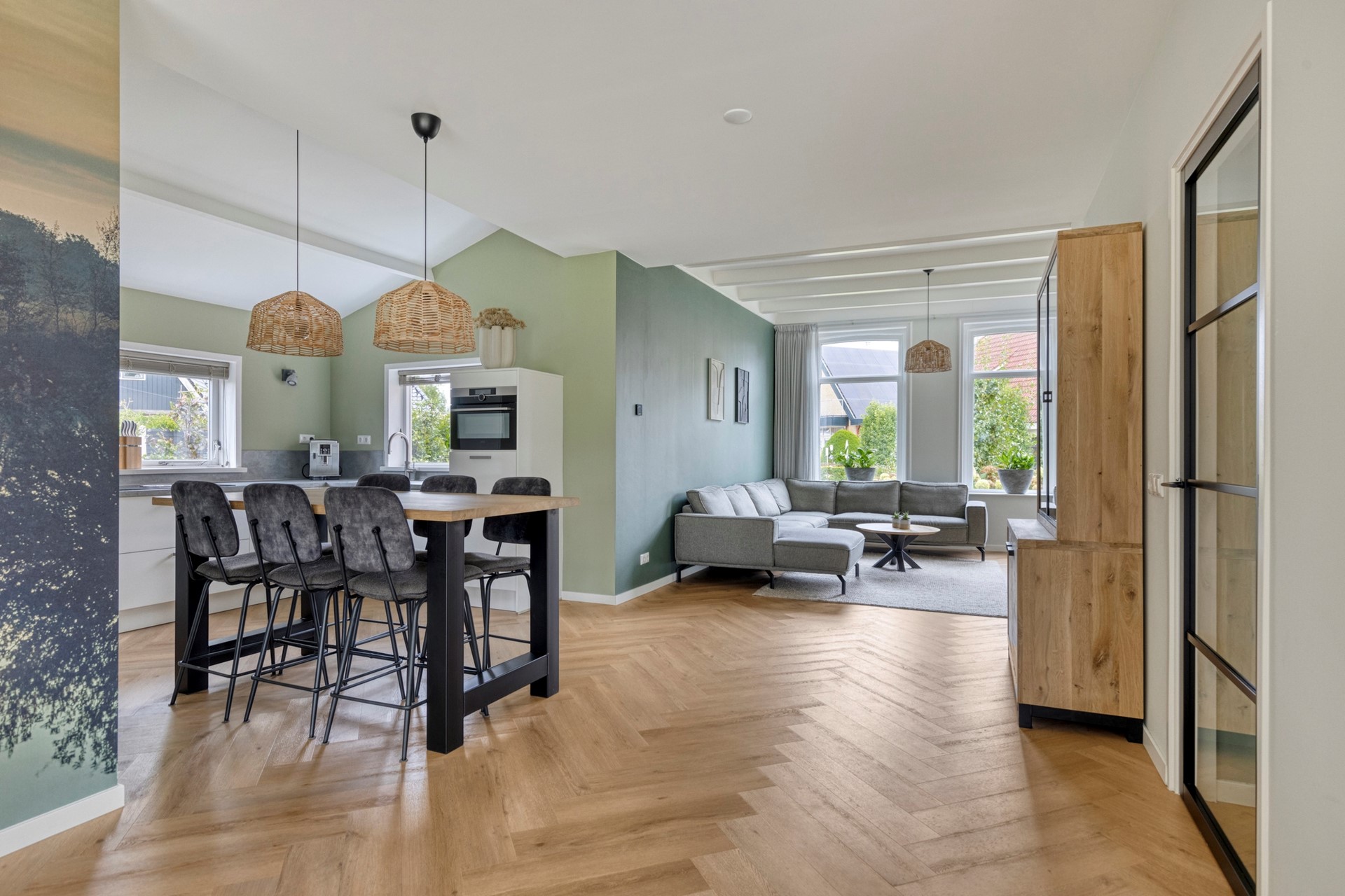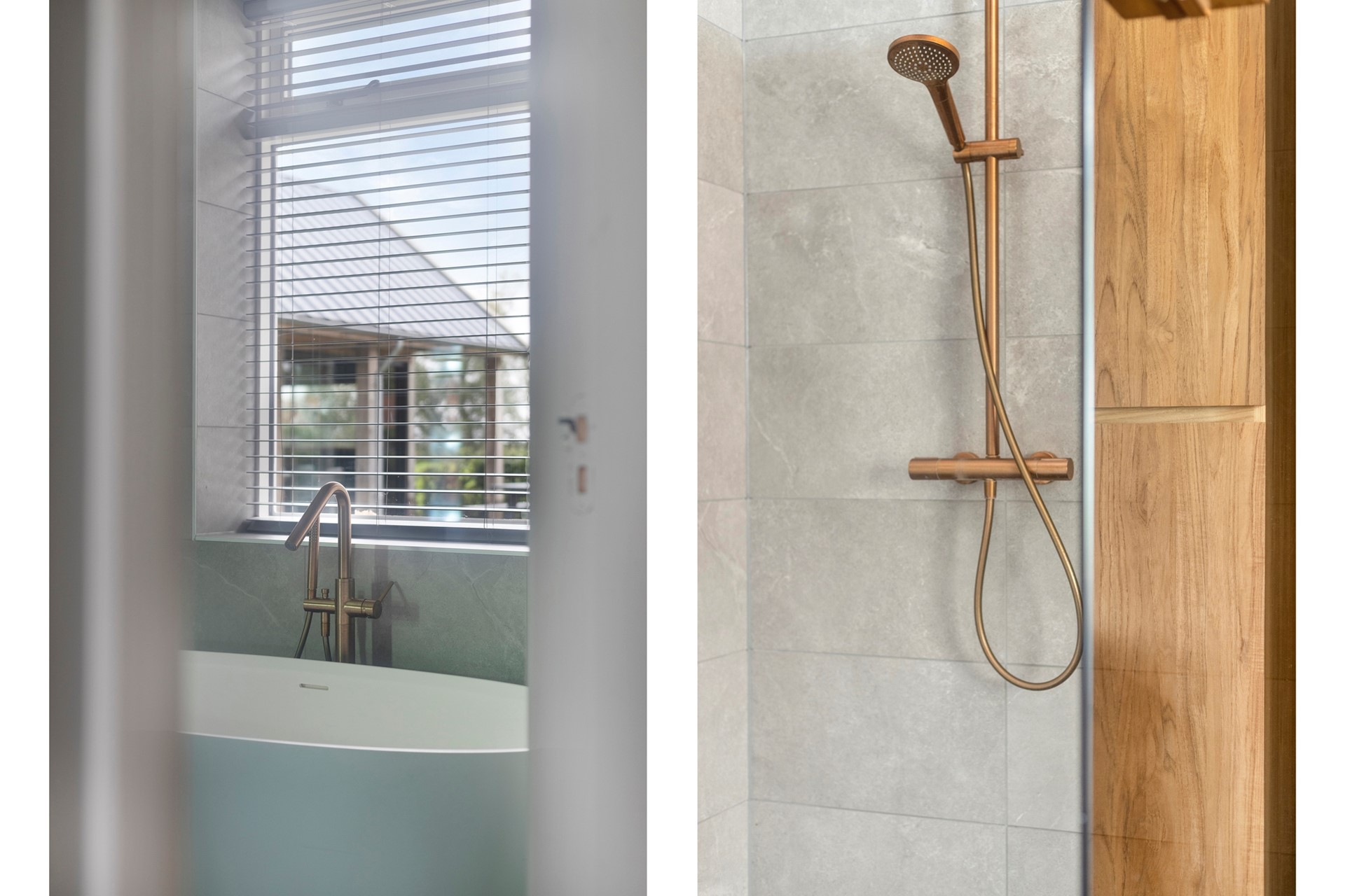 Begane grond: door de ruime voortuin komen we bij de entree van de woning. Bij binnenkomst bemerk je direct de luxe en kwaliteit waarmee deze woning is afgewerkt. Aan de linkerzijde vinden we een ruim kantoor, een strak afgewerkt toilet en de luxe badkamer (2024) welke is voorzien van inloop douche met regen douchekop en sunshower. Er is een dubbele wastafel met meubel en voldoende opbergruimte voor allerhande artikelen. Het vrijstaande ligbad maakt het geheel af. De gehele badkamer is tot in de puntjes gestyled en lijkt zo uit een woon-magazine te komen. Aan de rechterzijde van de entree tref je de trapopgang naar de verdieping een technische ruimte en de doorgang naar de woonkamer met open keuken. De woonkamer is ruim bemeten (circa 65 m2) en er is veel lichtinval door de grote raampartijen. Verder is er op de gehele benedenverdieping vloerverwarming aanwezig. Doordat de keuken zich in het midden van de benedenverdieping bevindt is er altijd verbinding met het gezin of gasten. De keuken (2024) is voorzien van inbouwapparatuur (combi-oven, vaatwasser, koelkast, inductiekookplaat met verzonken afzuigingen, een Quooker) en opgetrokken in een neutrale kleurstelling. Verder is er op de begane grond een ruime bijkeuken voor de was en droogopstelling.