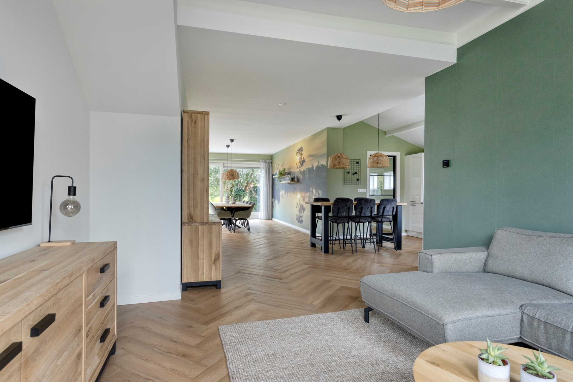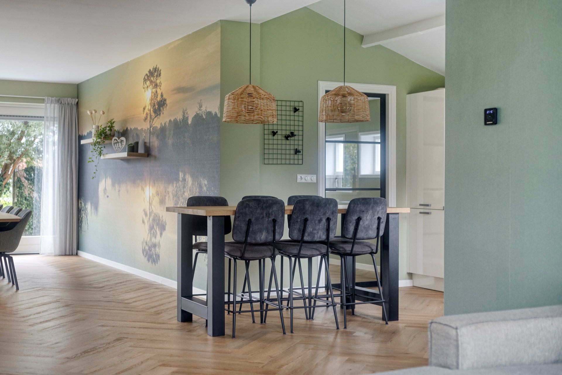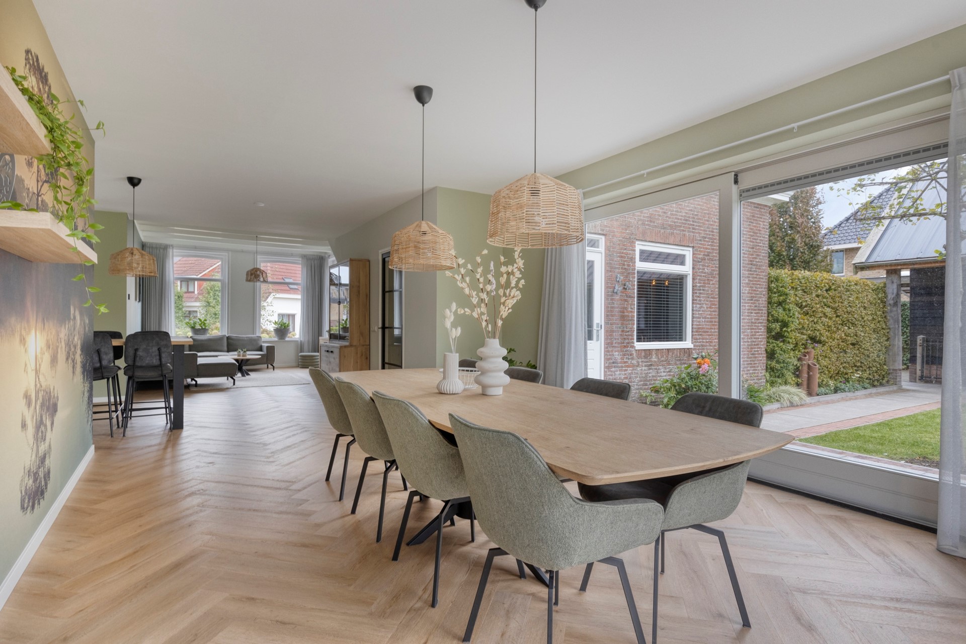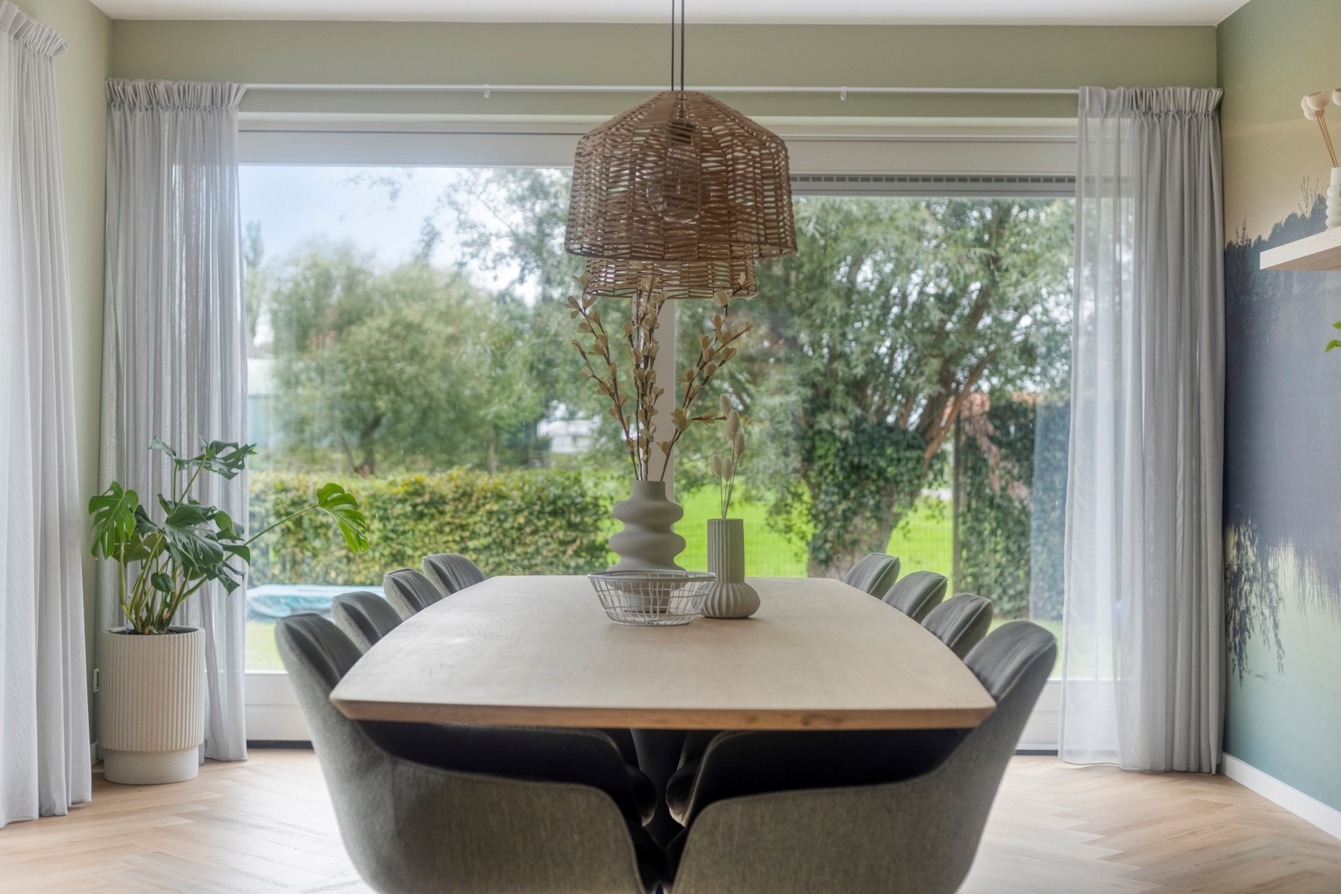 Begane grond: door de ruime voortuin komen we bij de entree van de woning. Bij binnenkomst bemerk je direct de luxe en kwaliteit waarmee deze woning is afgewerkt. Aan de linkerzijde vinden we een ruim kantoor, een strak afgewerkt toilet en de luxe badkamer (2024) welke is voorzien van inloop douche met regen douchekop en sunshower. Er is een dubbele wastafel met meubel en voldoende opbergruimte voor allerhande artikelen. Het vrijstaande ligbad maakt het geheel af. De gehele badkamer is tot in de puntjes gestyled en lijkt zo uit een woon-magazine te komen. Aan de rechterzijde van de entree tref je de trapopgang naar de verdieping een technische ruimte en de doorgang naar de woonkamer met open keuken. De woonkamer is ruim bemeten (circa 65 m2) en er is veel lichtinval door de grote raampartijen. Verder is er op de gehele benedenverdieping vloerverwarming aanwezig. Doordat de keuken zich in het midden van de benedenverdieping bevindt is er altijd verbinding met het gezin of gasten. De keuken (2024) is voorzien van inbouwapparatuur (combi-oven, vaatwasser, koelkast, inductiekookplaat met verzonken afzuigingen, een Quooker) en opgetrokken in een neutrale kleurstelling. Verder is er op de begane grond een ruime bijkeuken voor de was en droogopstelling.