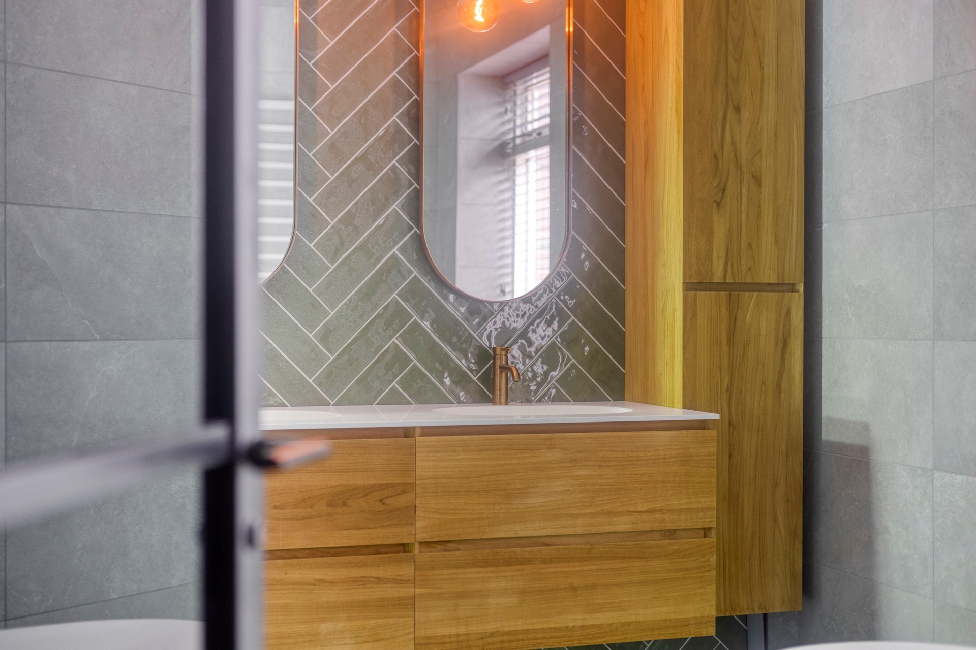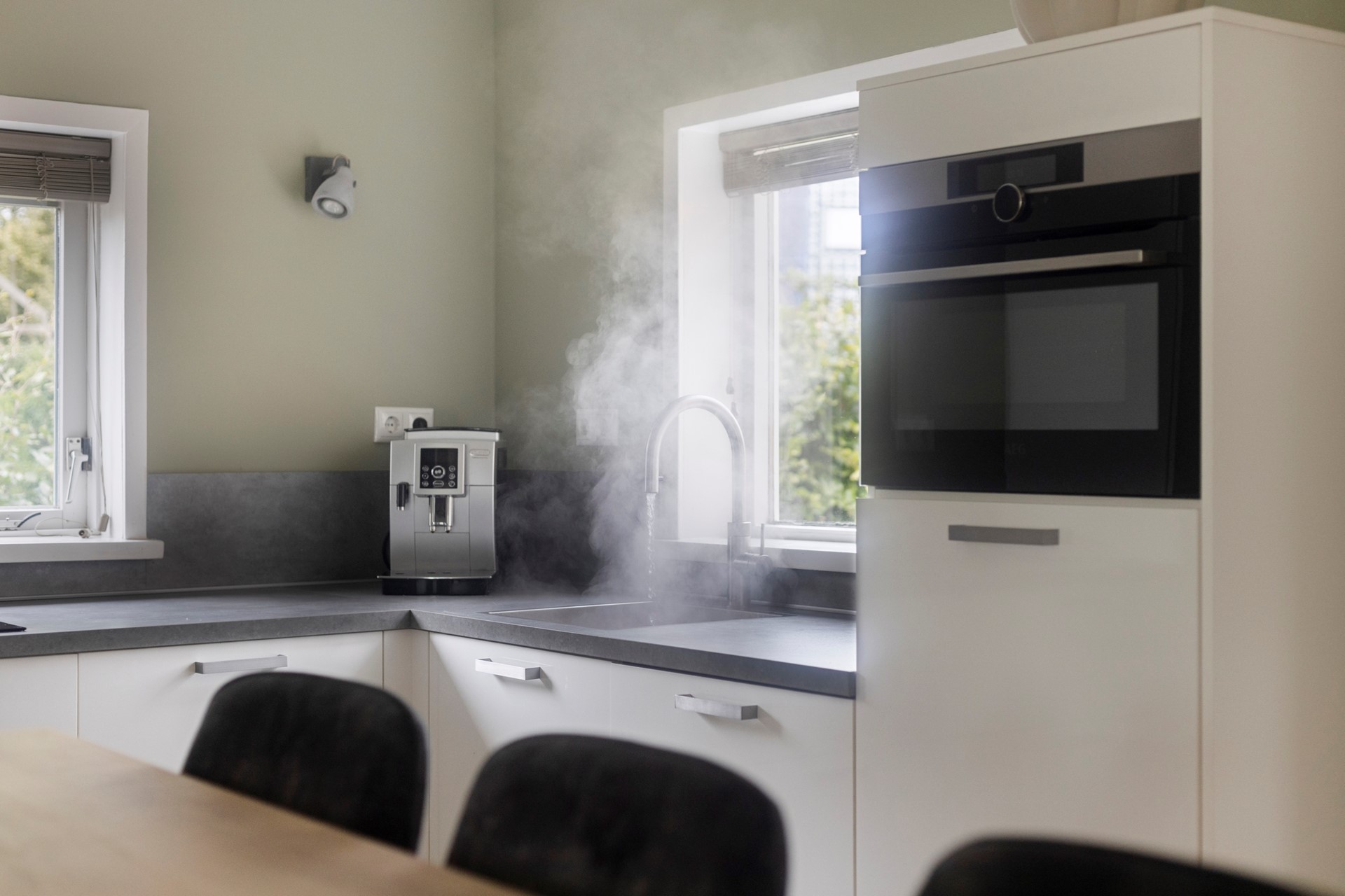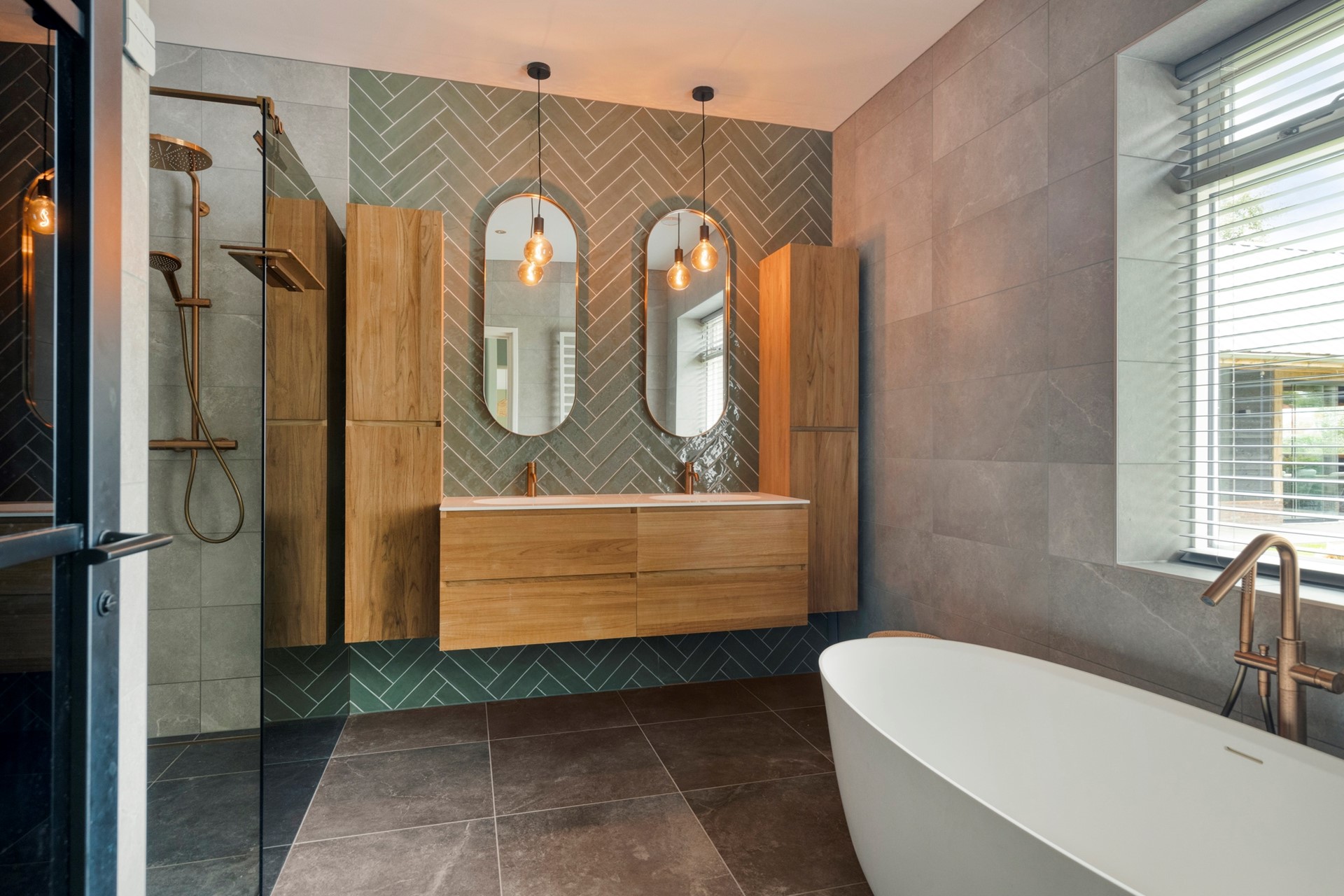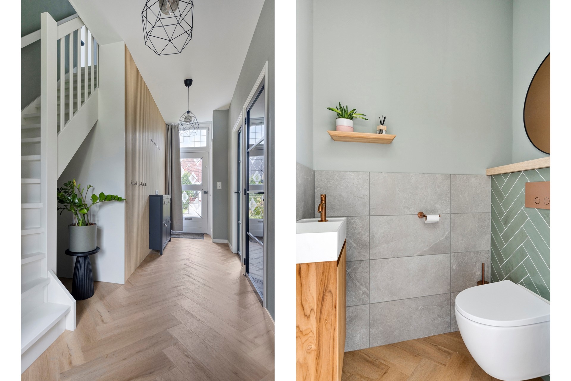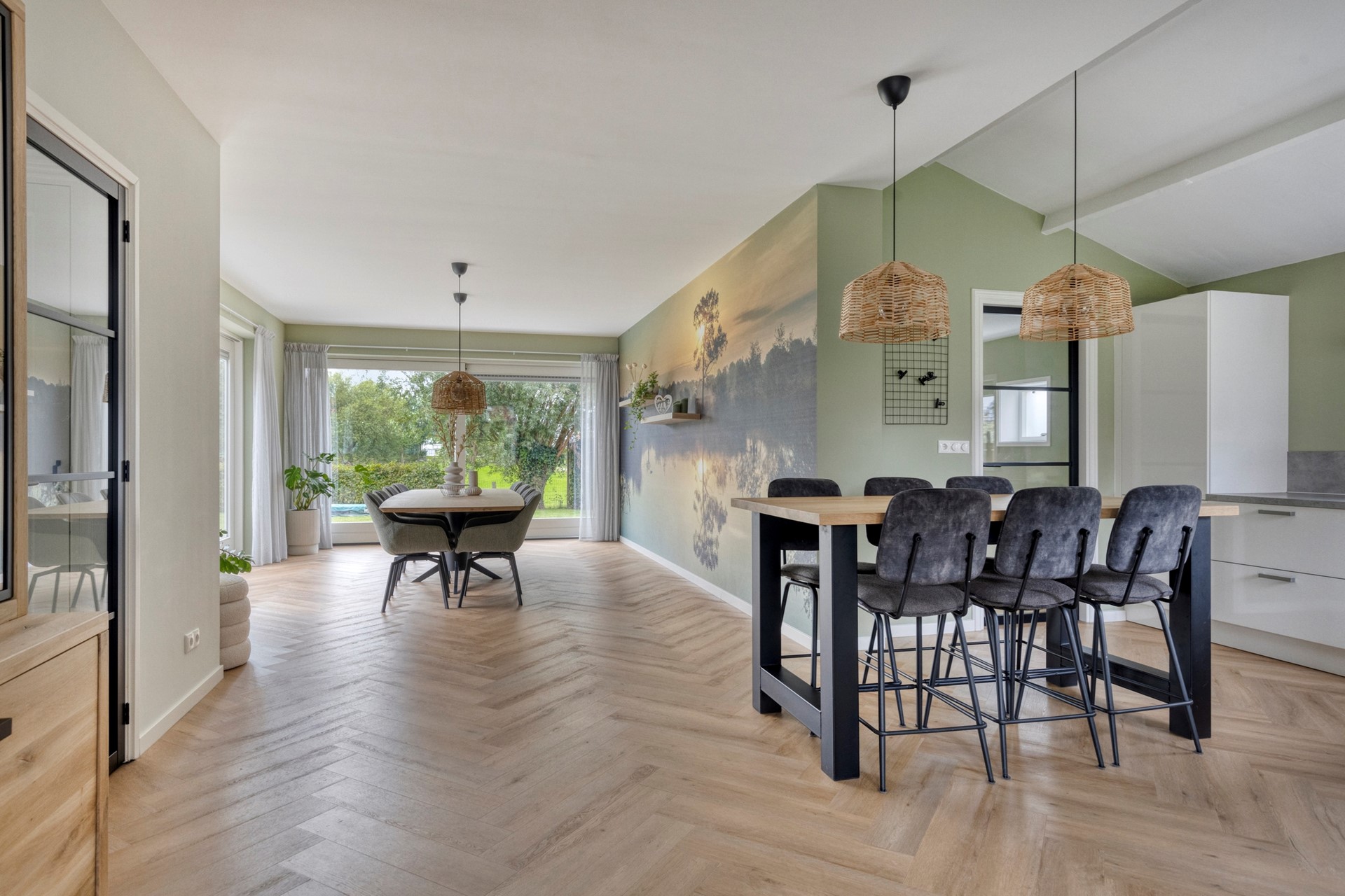 Begane grond: door de ruime voortuin komen we bij de entree van de woning. Bij binnenkomst bemerk je direct de luxe en kwaliteit waarmee deze woning is afgewerkt. Aan de linkerzijde vinden we een ruim kantoor, een strak afgewerkt toilet en de luxe badkamer (2024) welke is voorzien van inloop douche met regen douchekop en sunshower. Er is een dubbele wastafel met meubel en voldoende opbergruimte voor allerhande artikelen. Het vrijstaande ligbad maakt het geheel af. De gehele badkamer is tot in de puntjes gestyled en lijkt zo uit een woon-magazine te komen. Aan de rechterzijde van de entree tref je de trapopgang naar de verdieping een technische ruimte en de doorgang naar de woonkamer met open keuken. De woonkamer is ruim bemeten (circa 65 m2) en er is veel lichtinval door de grote raampartijen. Verder is er op de gehele benedenverdieping vloerverwarming aanwezig. Doordat de keuken zich in het midden van de benedenverdieping bevindt is er altijd verbinding met het gezin of gasten. De keuken (2024) is voorzien van inbouwapparatuur (combi-oven, vaatwasser, koelkast, inductiekookplaat met verzonken afzuigingen, een Quooker) en opgetrokken in een neutrale kleurstelling. Verder is er op de begane grond een ruime bijkeuken voor de was en droogopstelling.