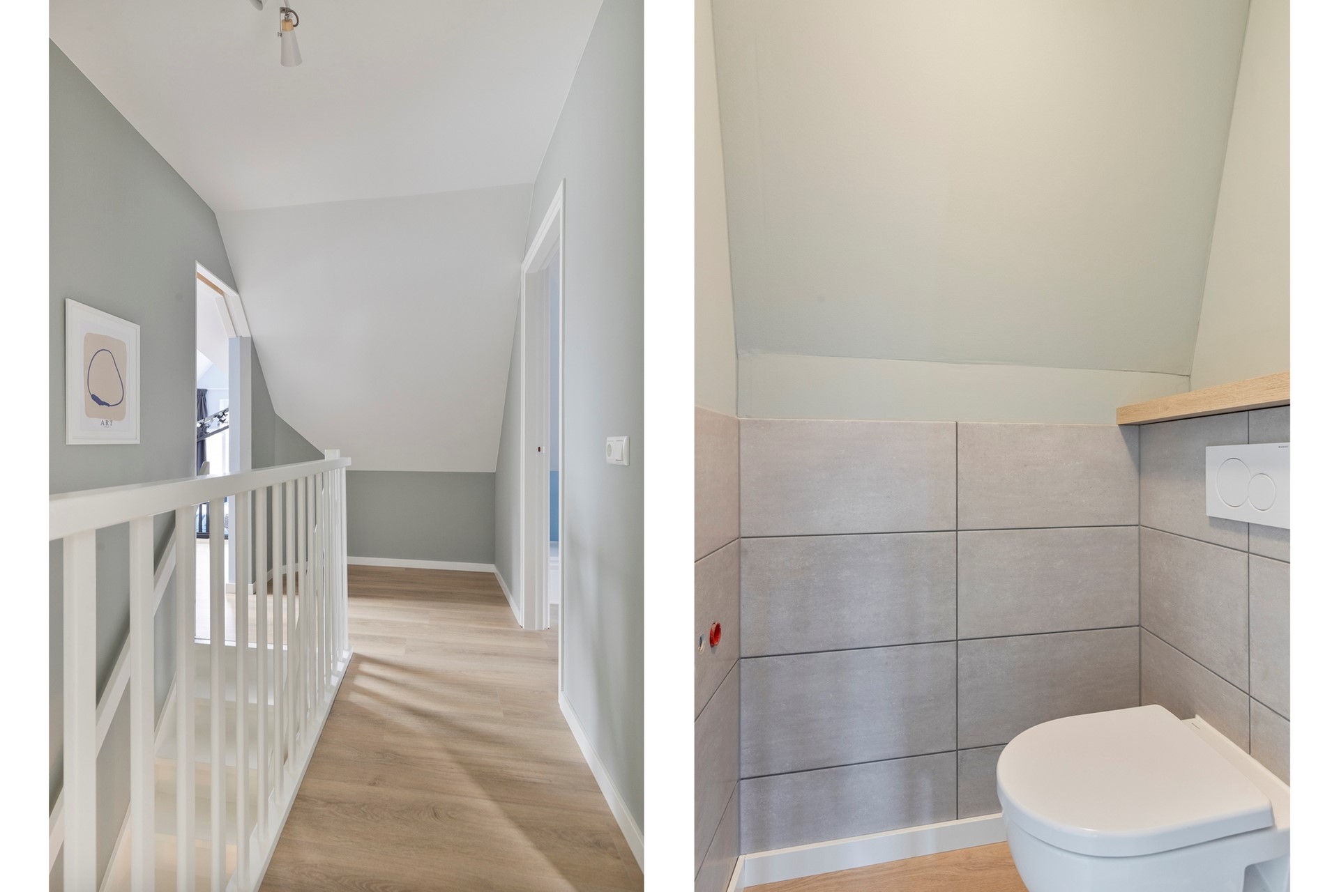 Eerste verdieping: Via de entree nemen we de trap naar boven. We komen aan op een ruim bemeten overloop. Er is een tweede toilet (2024) en maar liefst 5 ruime slaapkamers met voldoende lichtinval.