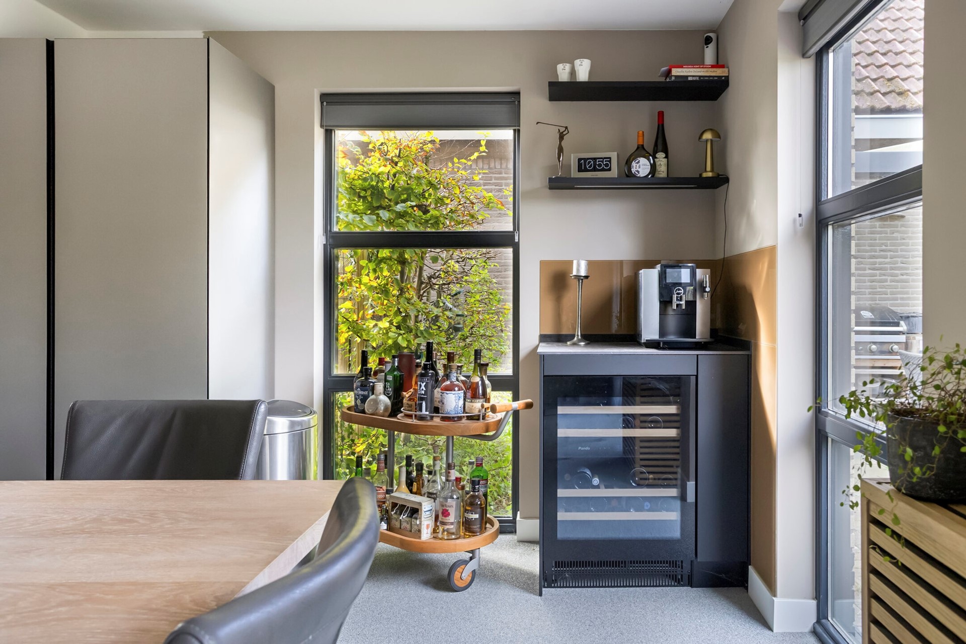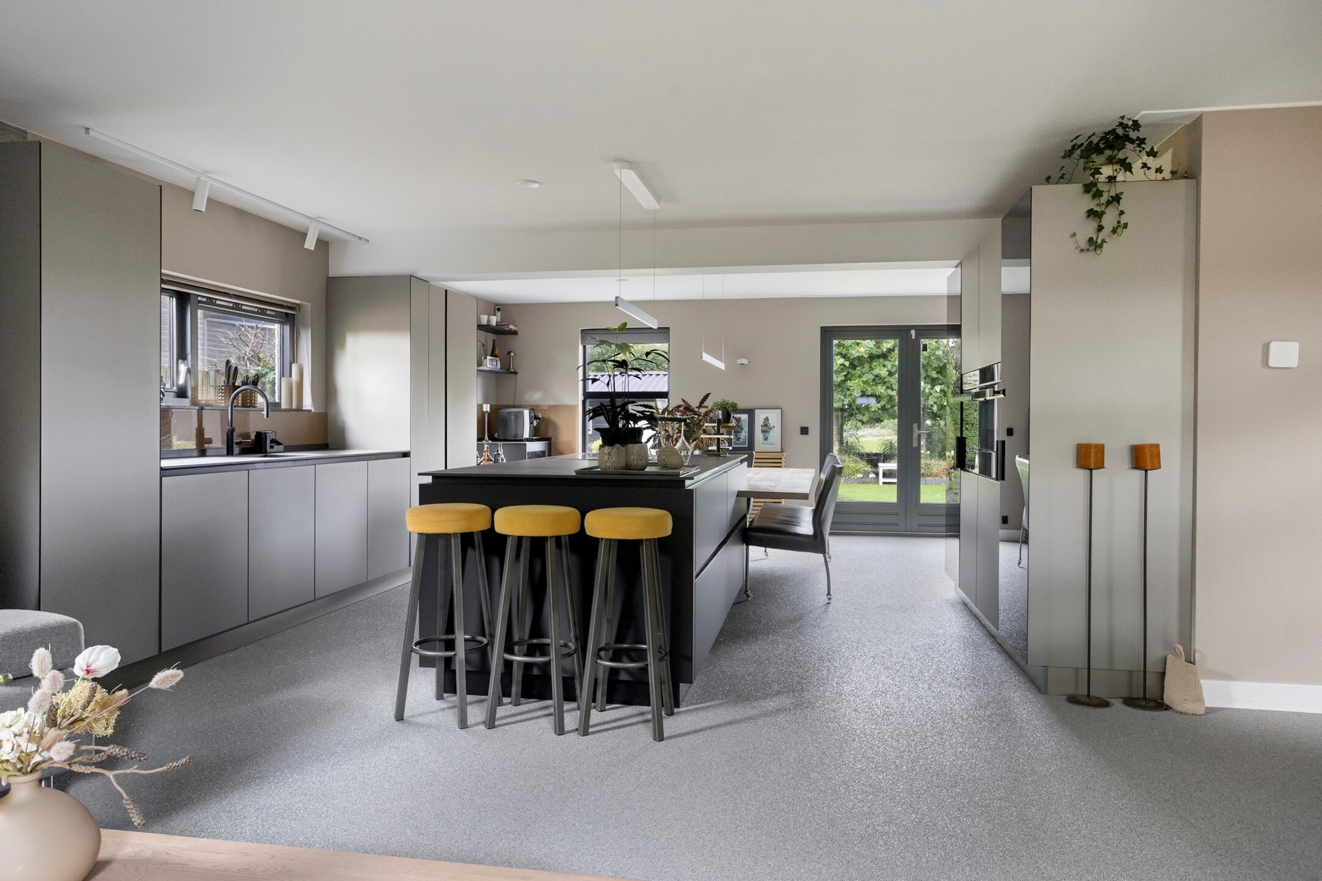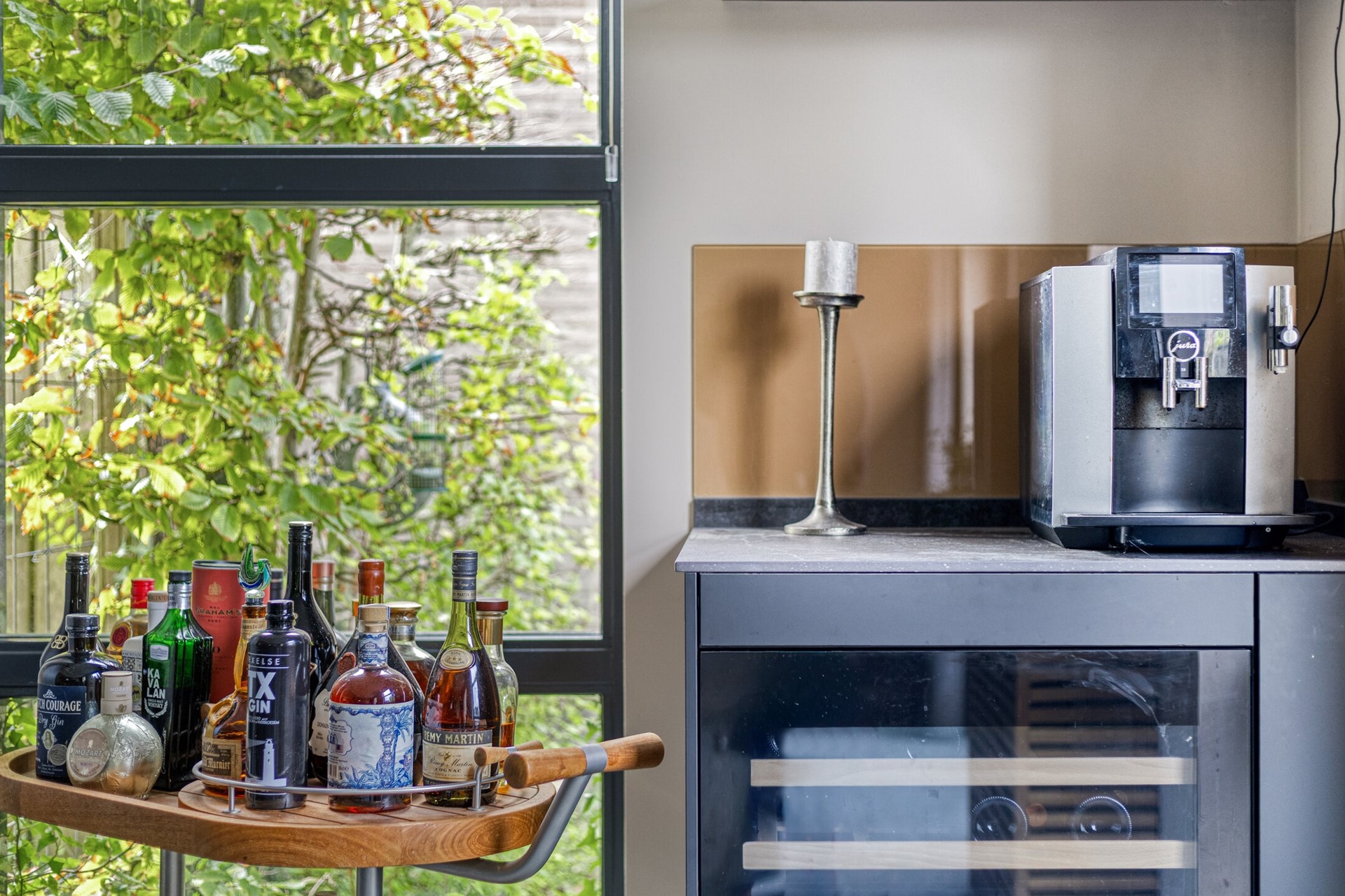 Begane grond: door de ruime en beschutte voortuin komen we bij de entree waar we de meterkast en een verzorgt toilet vinden. Ook de trap naar de eerste verdieping vinden we hier. Linksaf door de deur lopen we de gerenoveerde woonkamer binnen welke is voorzien van een stijlvolle en praktische siergrindvloer. De zitkamer is aan de straatkant van de woning en midden in de woonkamer treffen we de luxe woonkeuken met kookeiland voorzien van inductie kookplaat en hier aan vast een massief eiken eettafel. De keuken is verder voorzien van twee combiovens, een vaatwasser, een spoelgedeelte met Quooker, een koelkast, wijnkoeler en diverse stopcontacten. Achter in de kamer bevindt zich de openslaande tuindeuren welke voor een prettige verbinding met de grote tuin op het westen zorgt. eveneens aan de achterzijde van de woning is de bijkeuken met technische ruimte en was-droog opstelling en een deur naar de tuin.