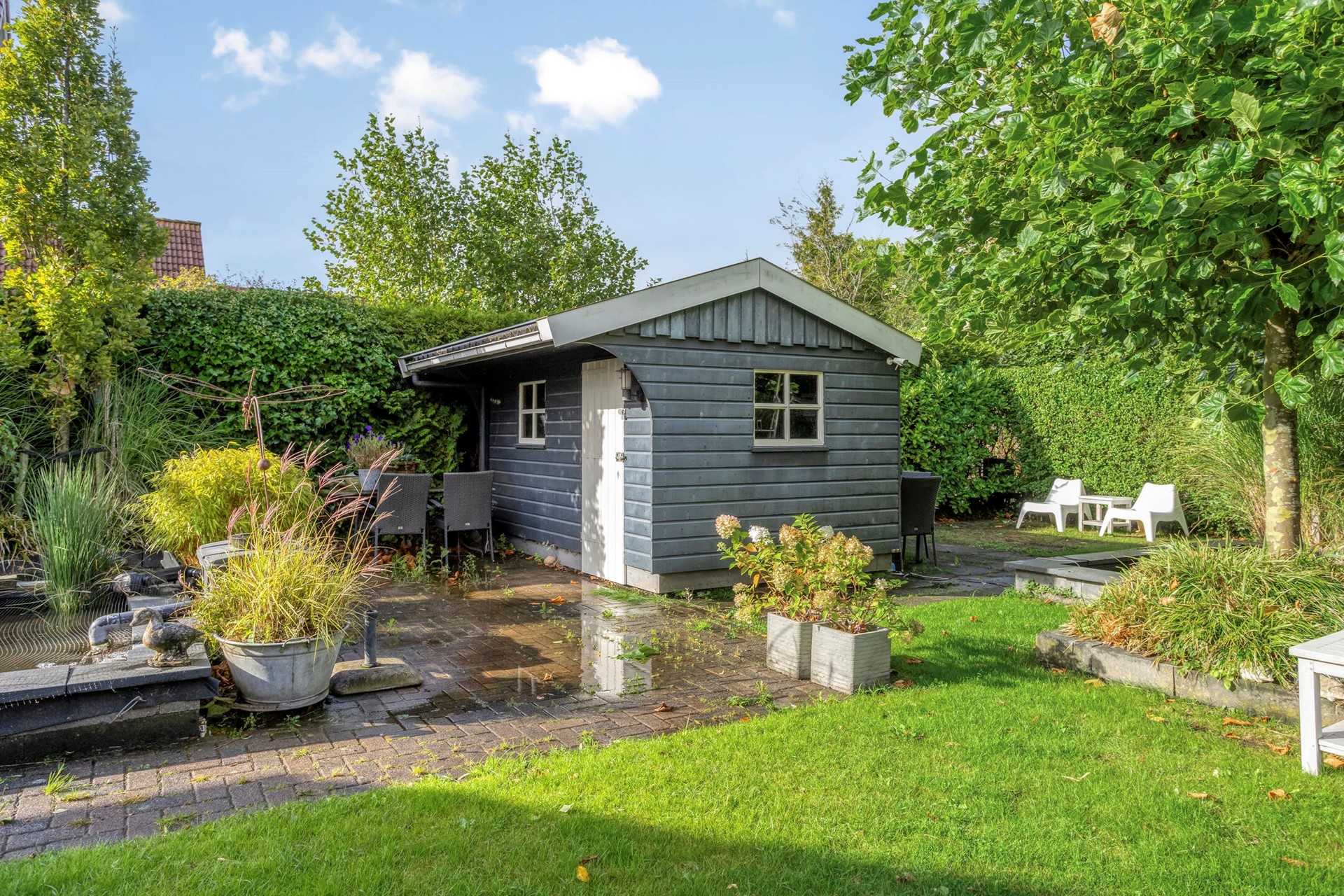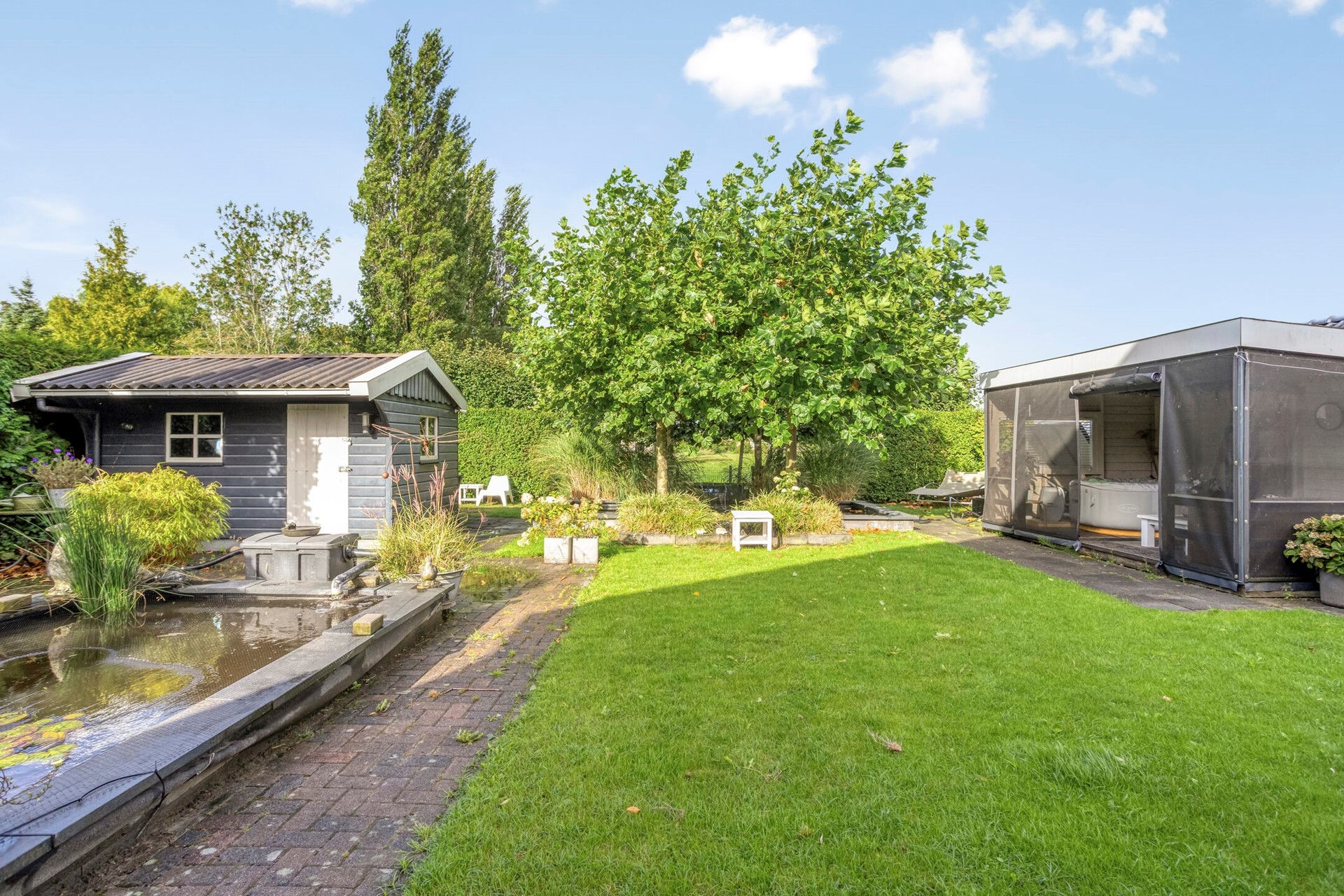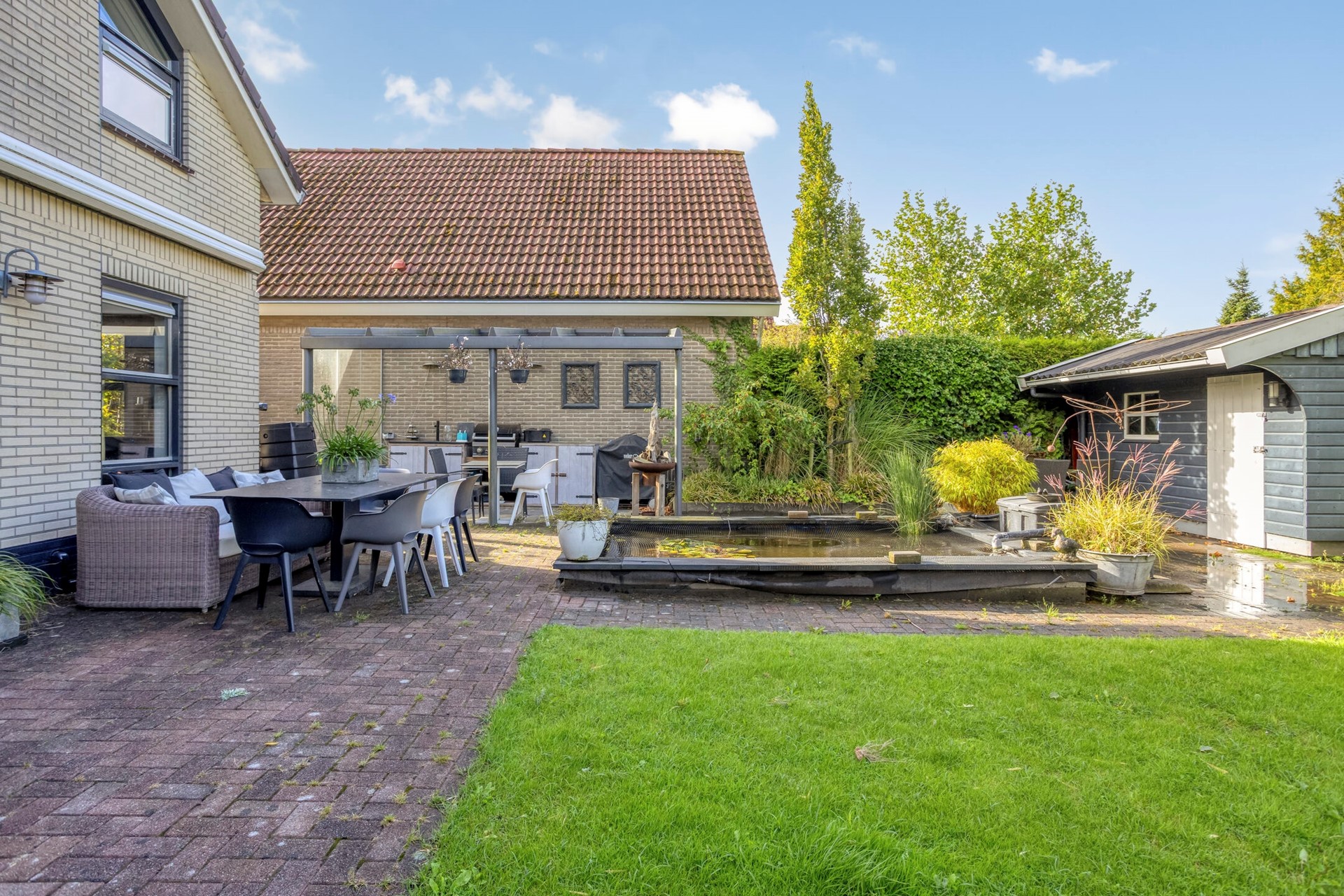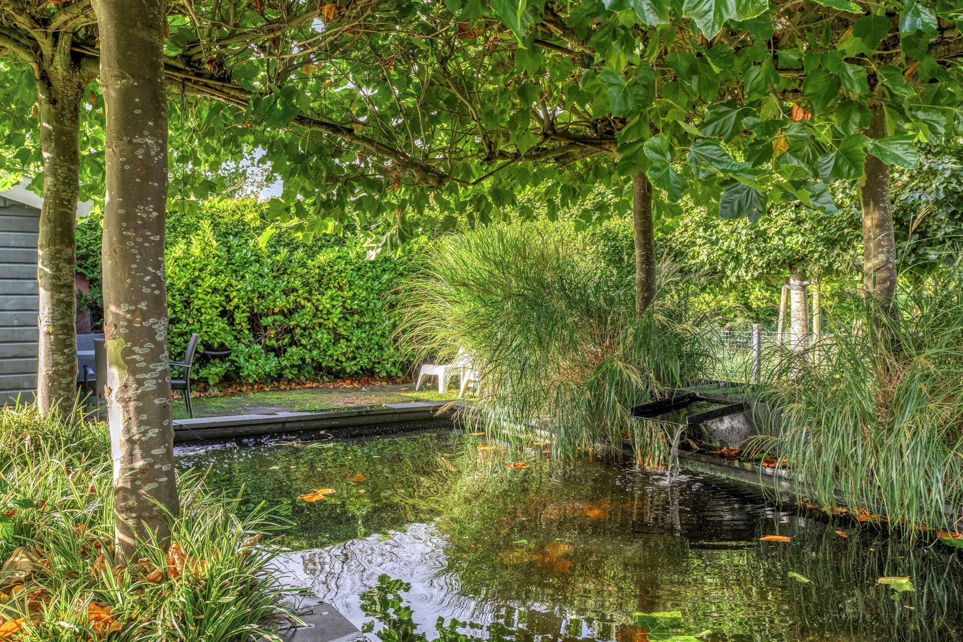 Tuin: De smaakvol aangelegde grote tuin op het westen is goed onderhouden en voorzien van diverse vijverpartijen, een overkapping, buitenkeuken en meerdere gezellige zitjes om van zon of schaduw te genieten op mooie dagen. Ook is de woning voorzien van elektrische zonwering. Achter de woning kun je genieten van een vrij uitzicht en een hengeltje uitgooien in de sloot achter de woning.