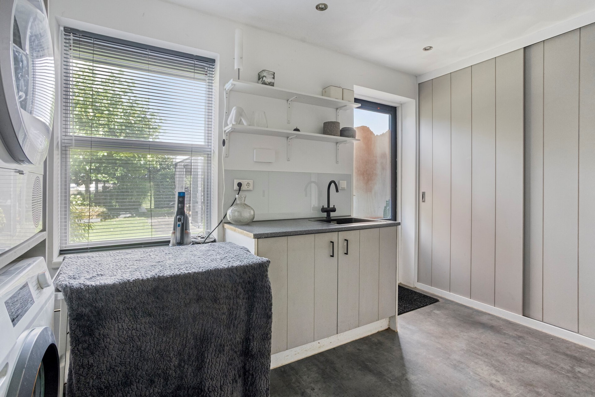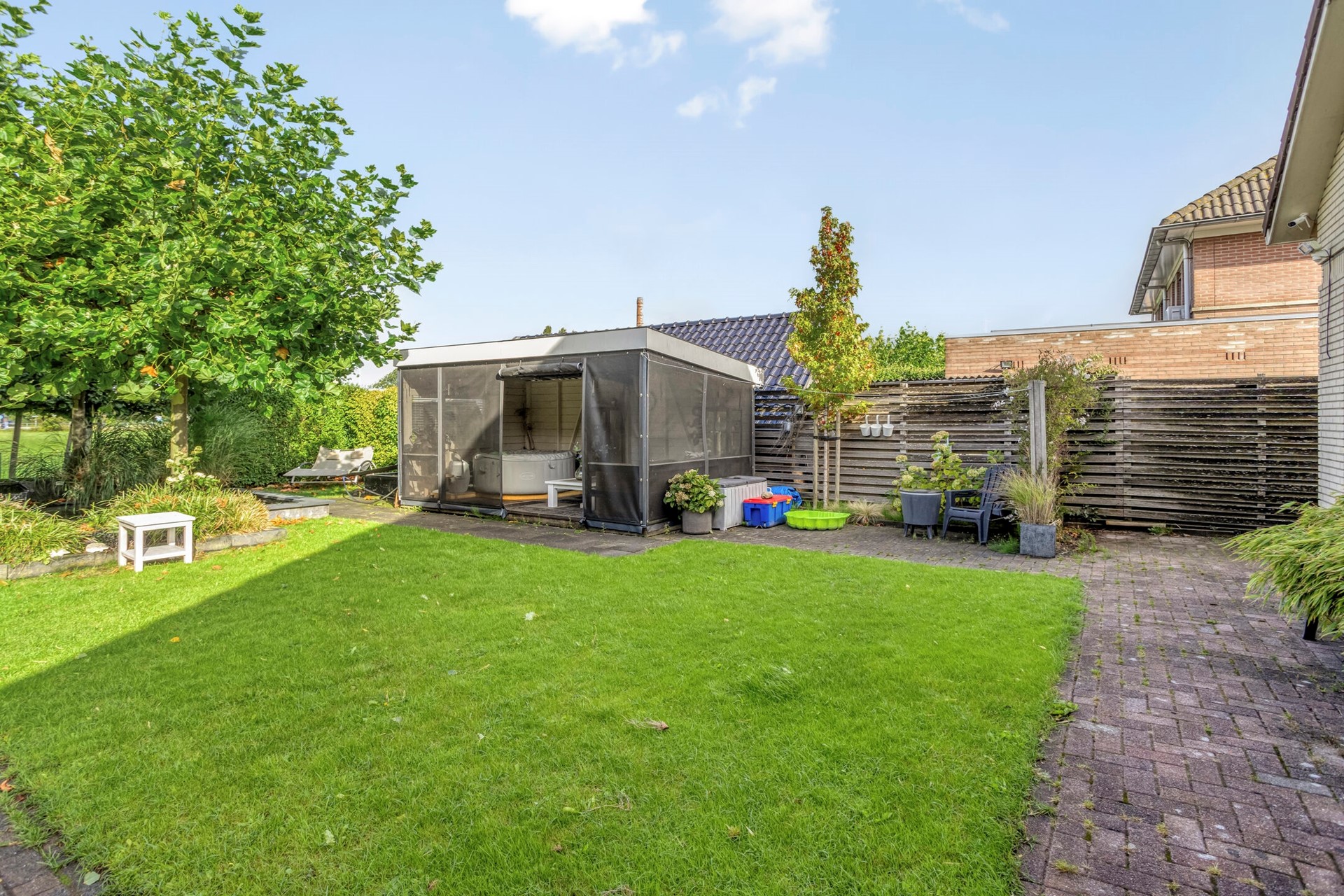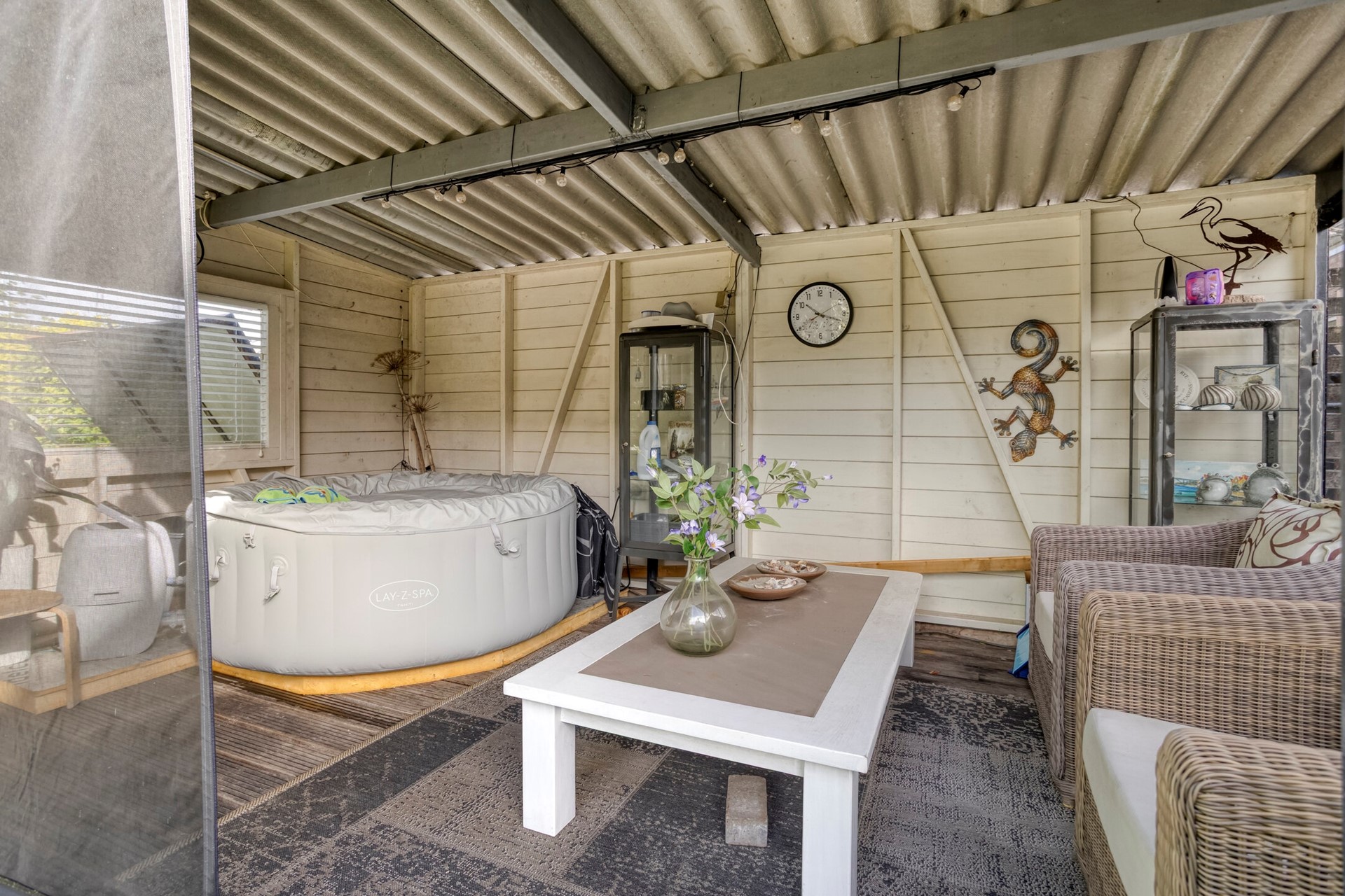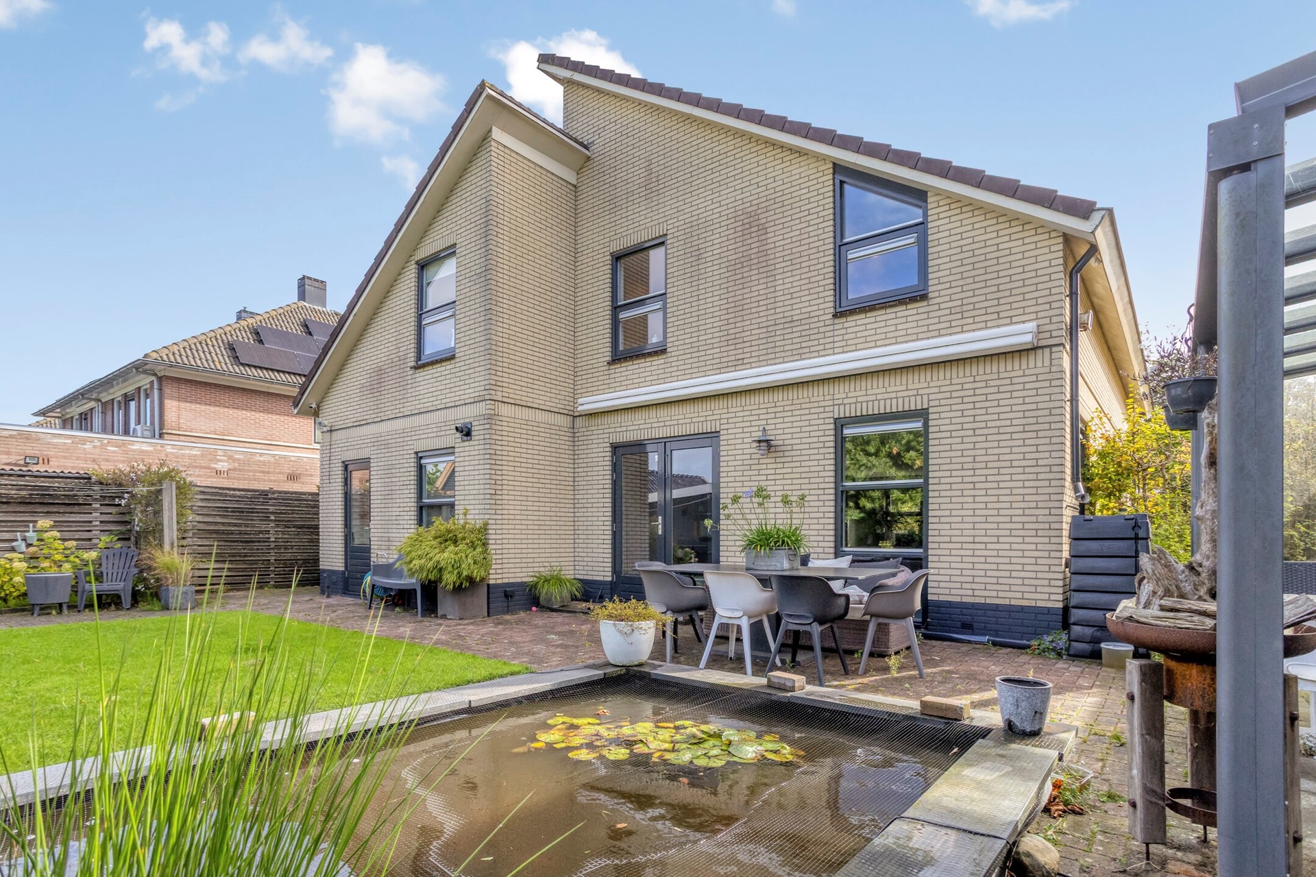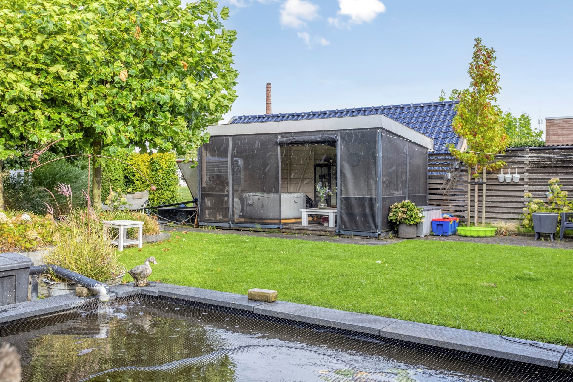 Tuin: De smaakvol aangelegde grote tuin op het westen is goed onderhouden en voorzien van diverse vijverpartijen, een overkapping, buitenkeuken en meerdere gezellige zitjes om van zon of schaduw te genieten op mooie dagen. Ook is de woning voorzien van elektrische zonwering. Achter de woning kun je genieten van een vrij uitzicht en een hengeltje uitgooien in de sloot achter de woning.