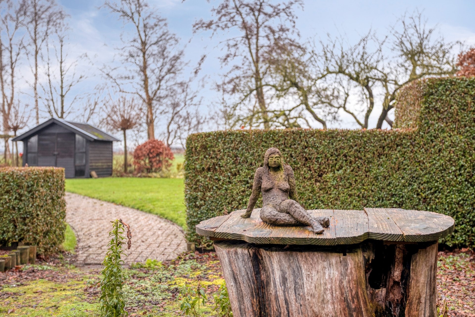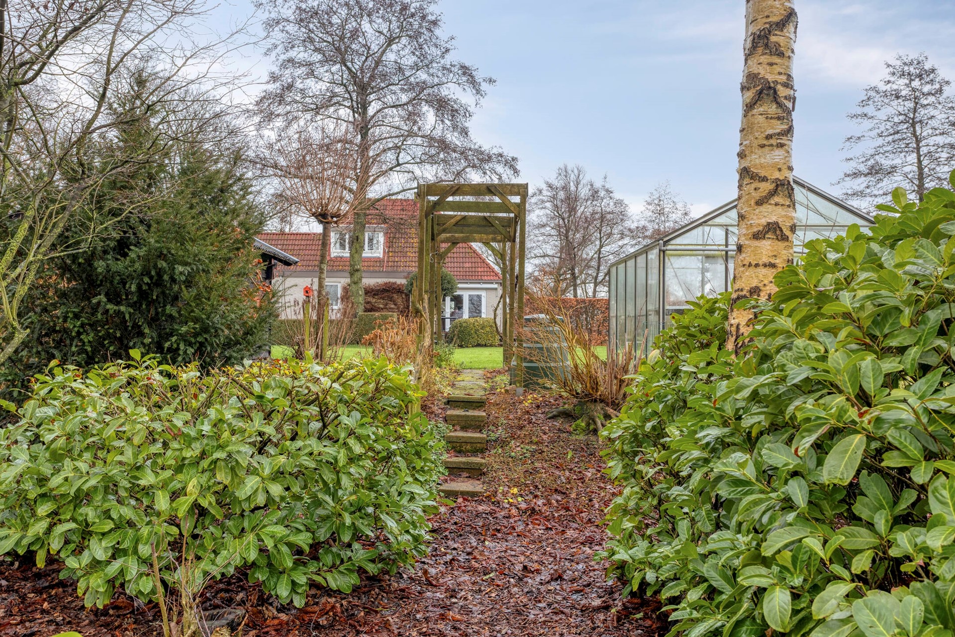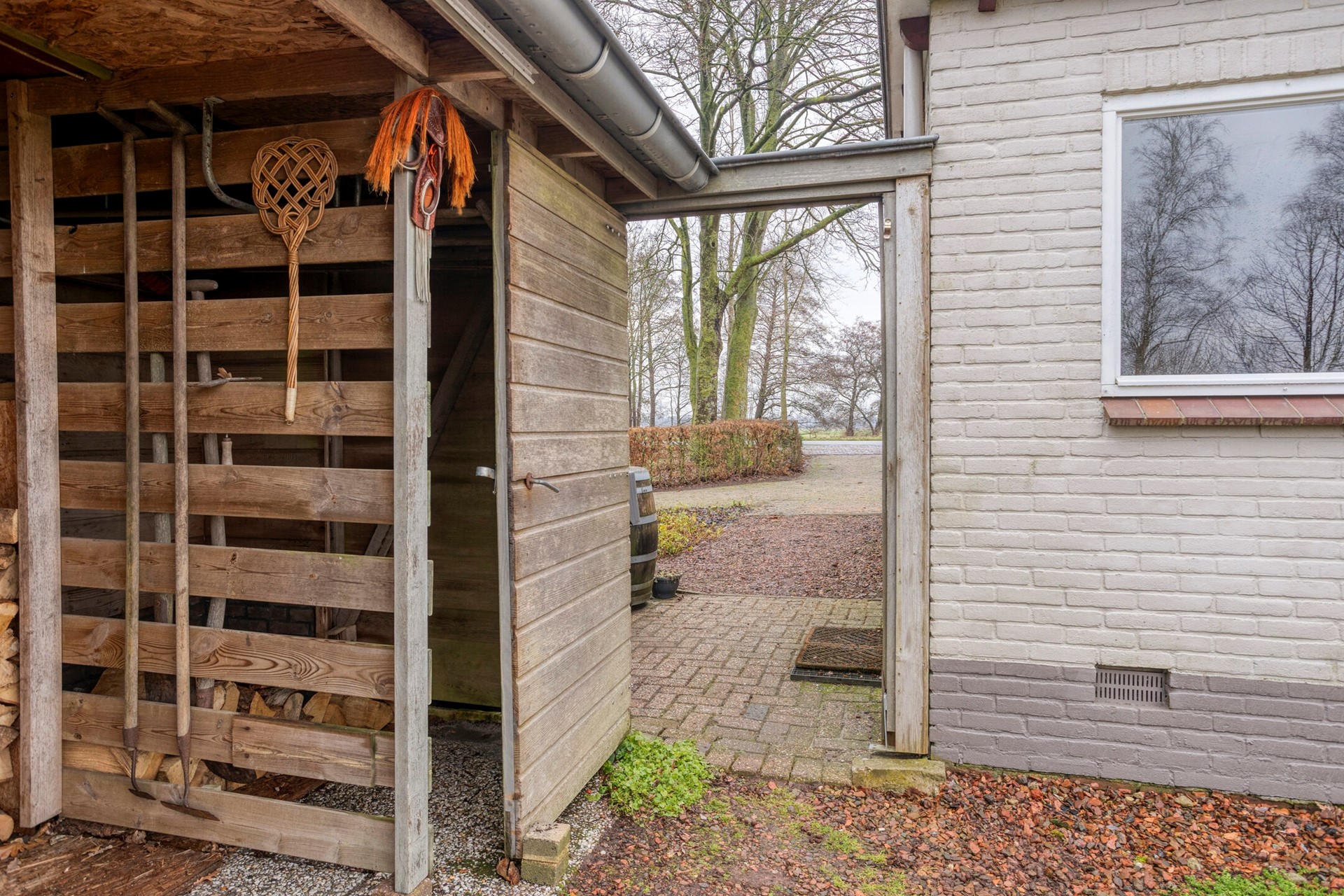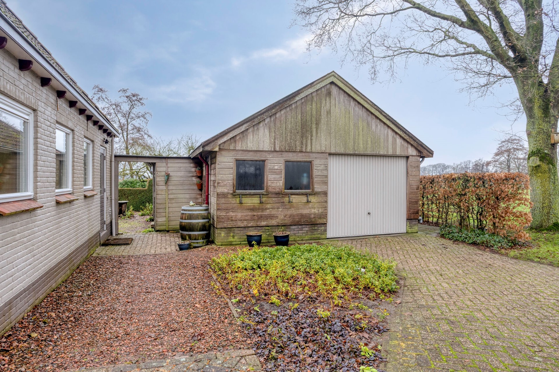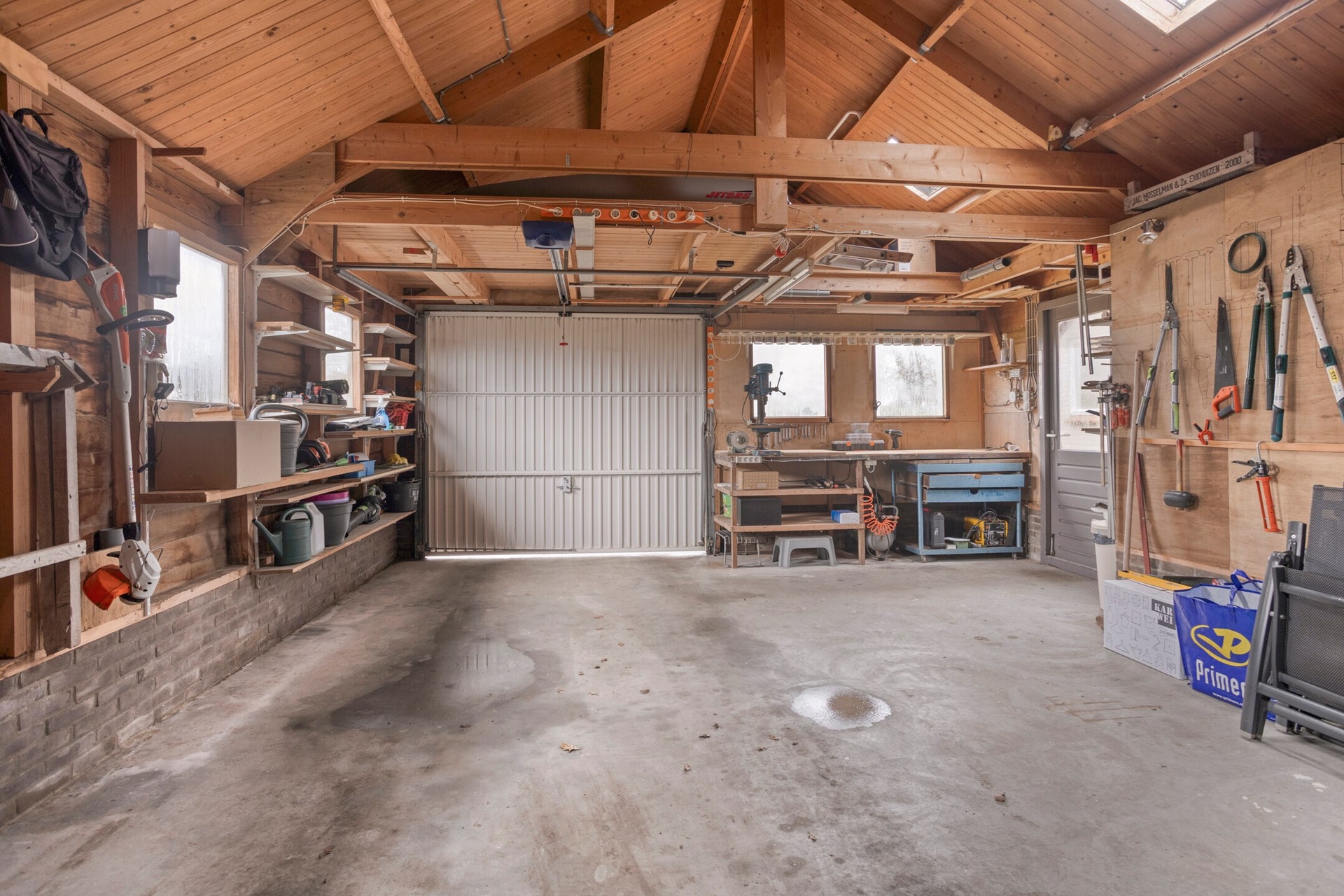 Op het perceel staan diverse handige bergingen en een kas voor het verbouwen van kruiden, fruit of groenten. Ook is er een degelijk gebouwde vrijstaande houten garage (43m2) met gemetselde borstwering, voorzien van carport (23,5m2) aan de achterzijde voor stalling van bijvoorbeeld een boot, caravan of camper. Dit is uiteraard afhankelijk van het formaat.