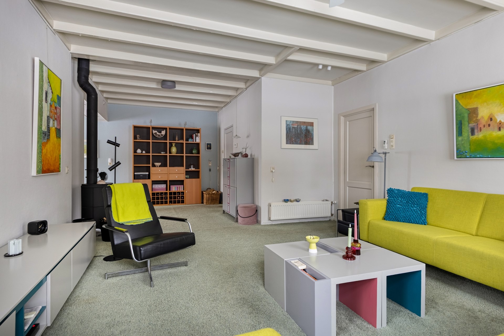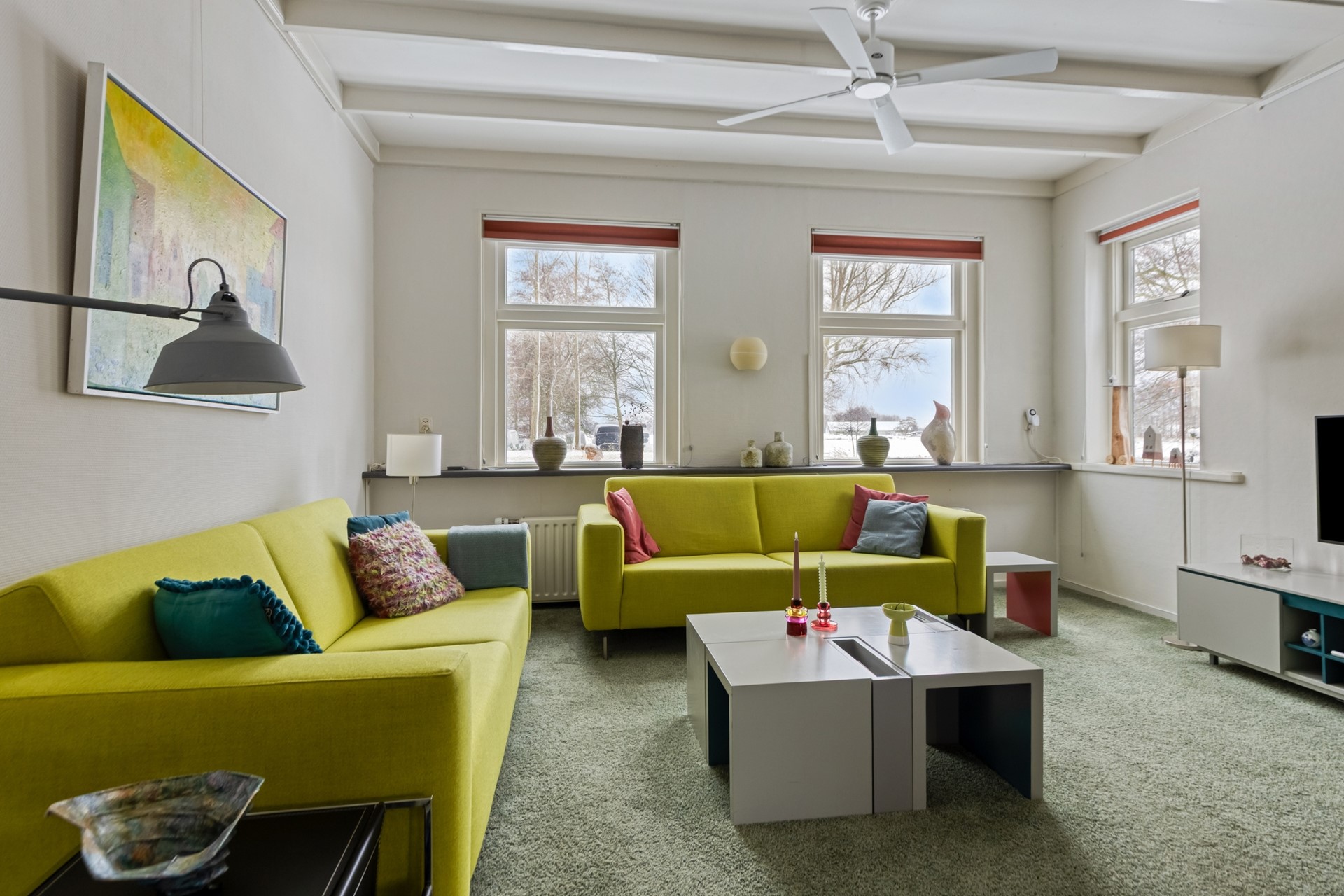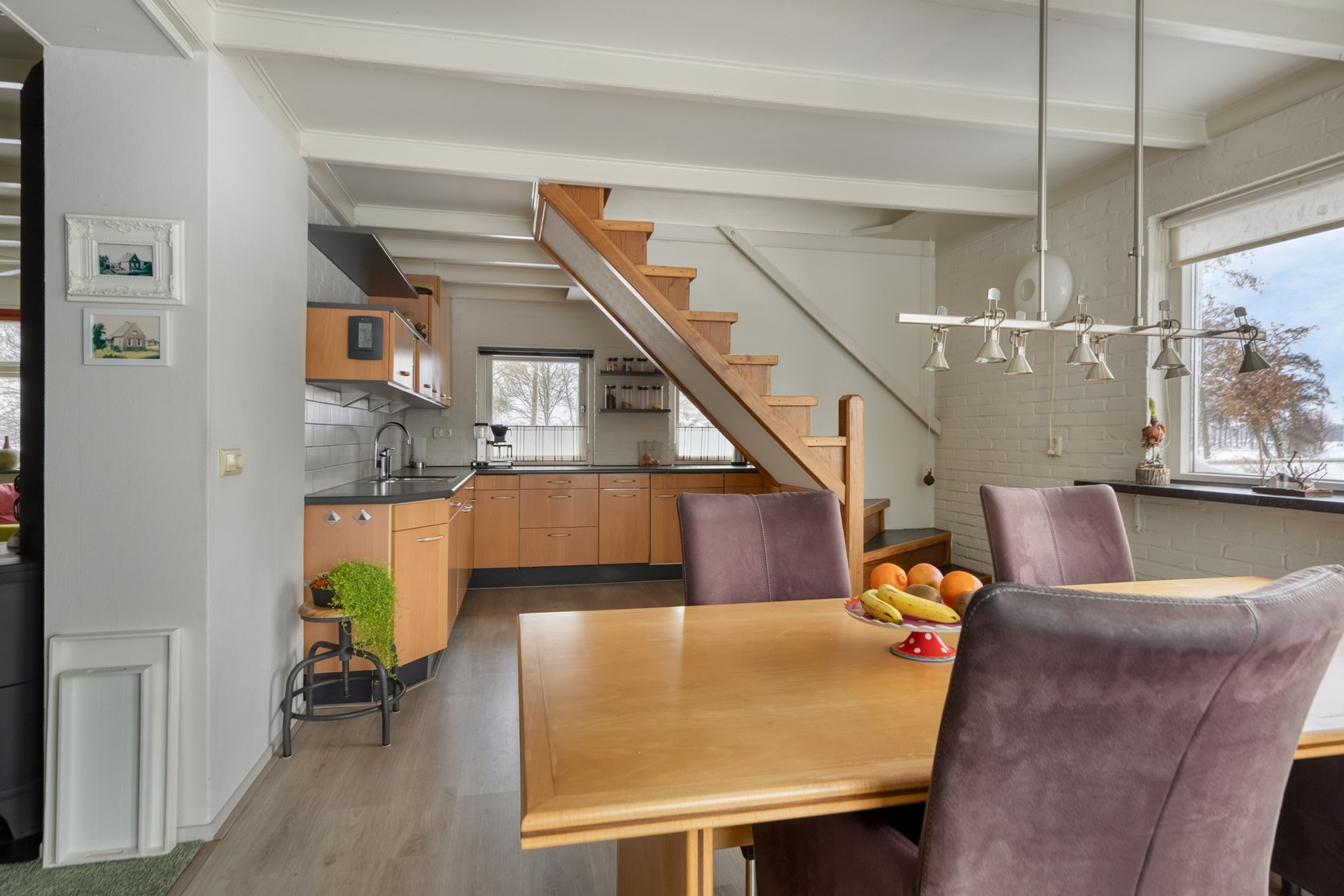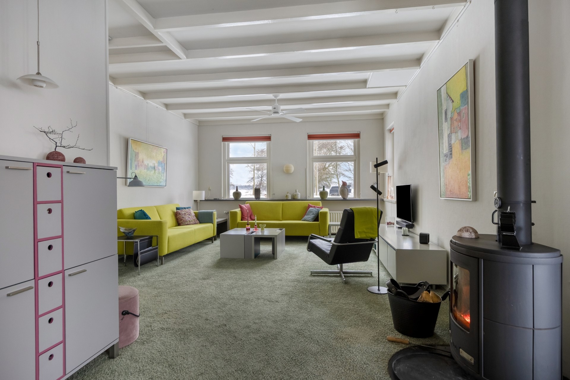 Bij aankomst nemen wij u mee door de boeren(voor)deur, waarnaast nog een porseleinen potje hangt dat herinnert aan vervlogen tijden. Door de hal lopen we de woonkamer (50,5m2) in. Deze ruimte biedt een bijna panoramisch uitzicht over de landerijen. U zult de seizoenen ervaren zoals u dat nog nooit heeft gedaan. De houtkachel draagt zeker bij aan deze beleving in de koude maanden. Aansluitend de eetkamer, die is verbonden met de halfopen keuken (2000). De openslaande deuren verbinden binnen met buiten door lichtinval en frisse lucht en geven toegang tot het terras.