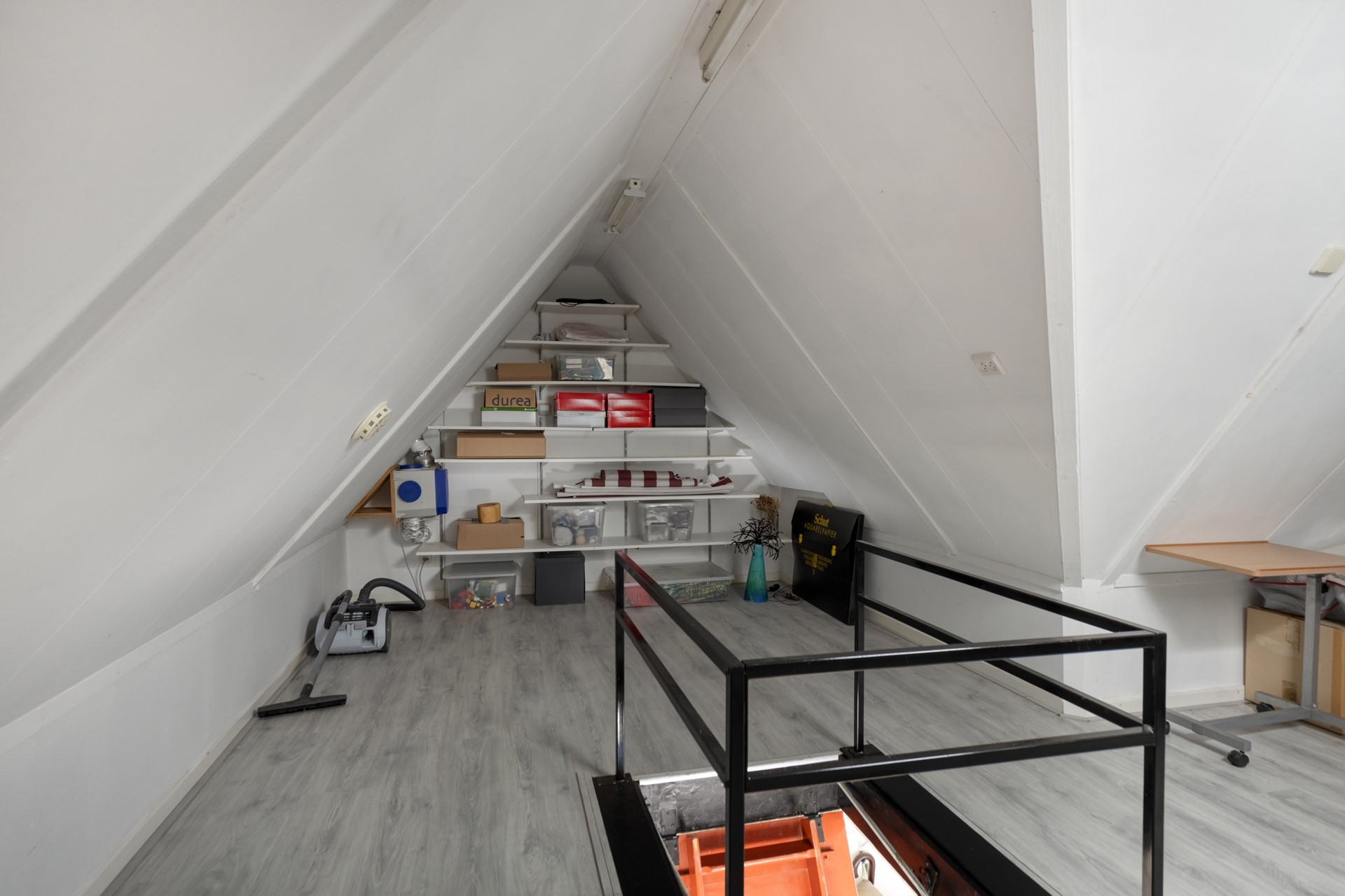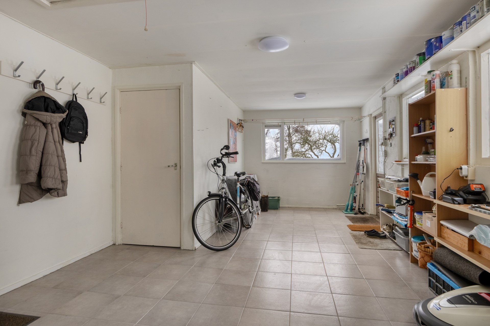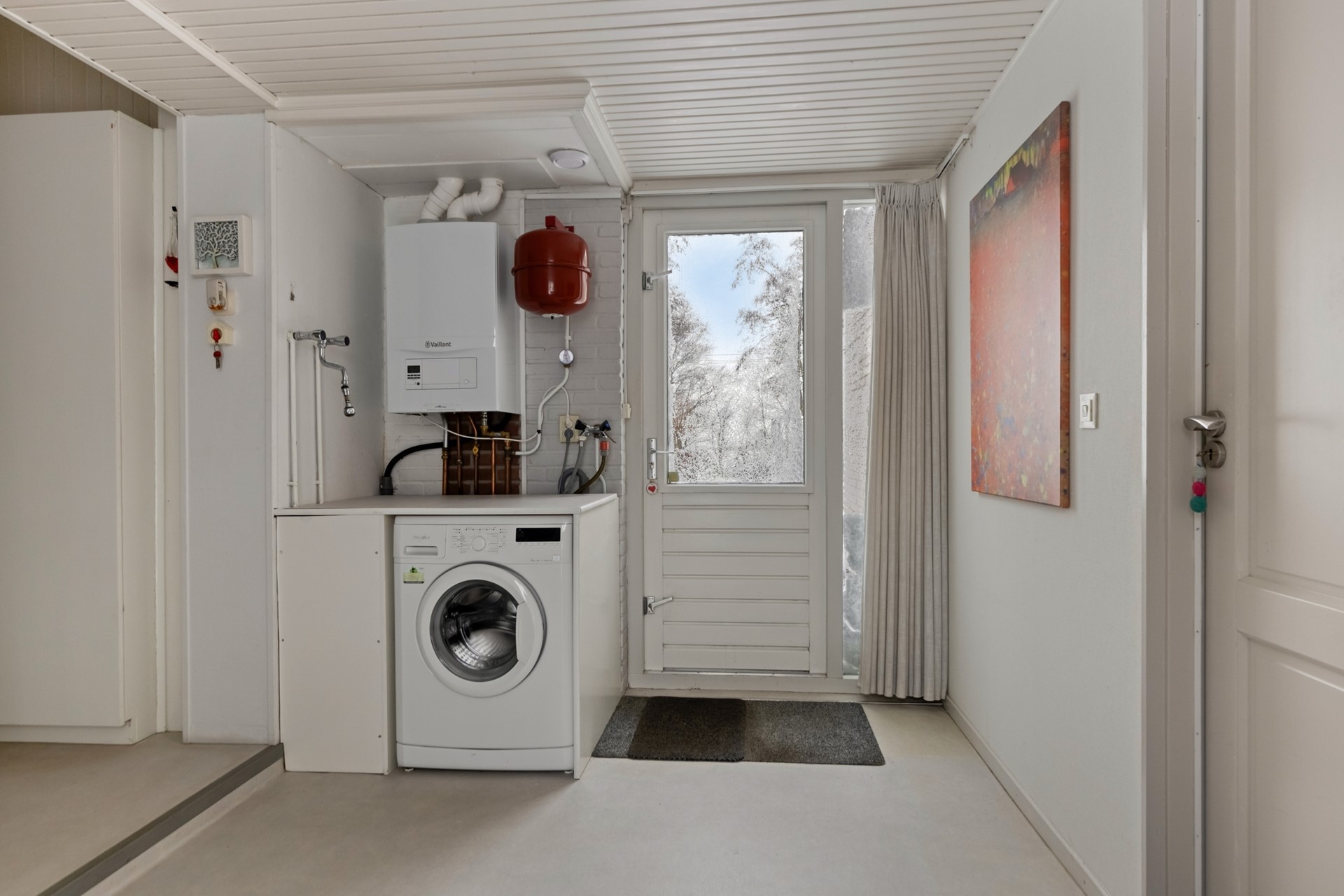 Terug door de woonkamer bereiken we de bijkeuken/hal die ons brengt bij de slaapkamer (20,9m2) op de begane grond. De combinatie met de badkamer (2006) die aan de andere kant van de hal is, maakt deze woning geschikt voor toekomstbestendig wonen. In deze hal treft u eveneens het toilet. We lopen door naar het einde van de gang. Hier treffen we de nieuwe CV ketel (2025) aan, een uitgang naar de achtertuin en de doorgang naar de aangebouwde (1979) stenen garage (28m2) die volledig is onderkelderd (24m2) en voorzien van een zolder die met vlizotrap bereikbaar is.
