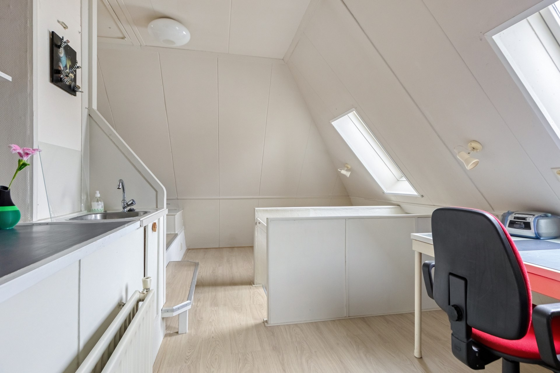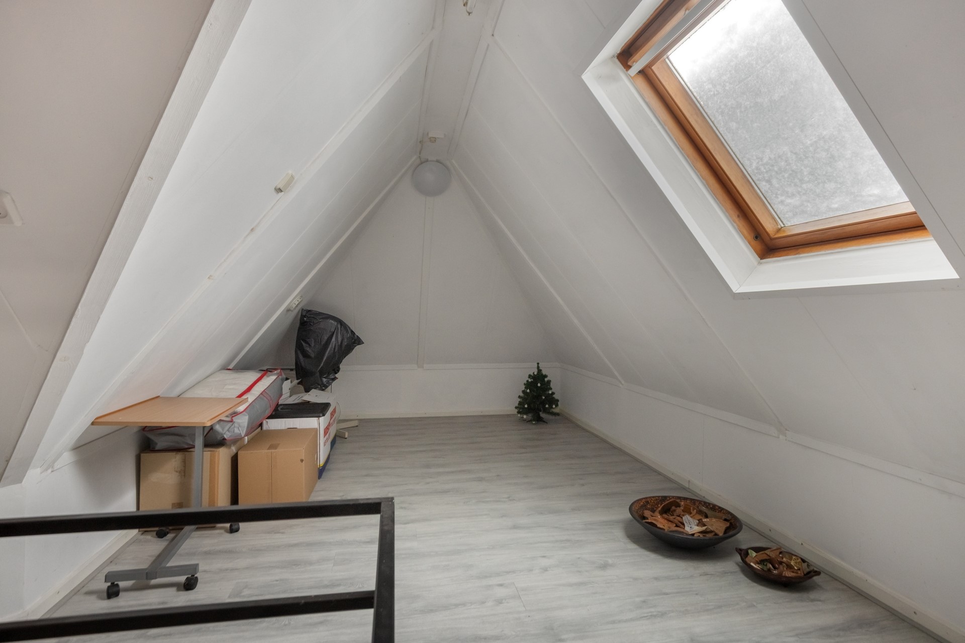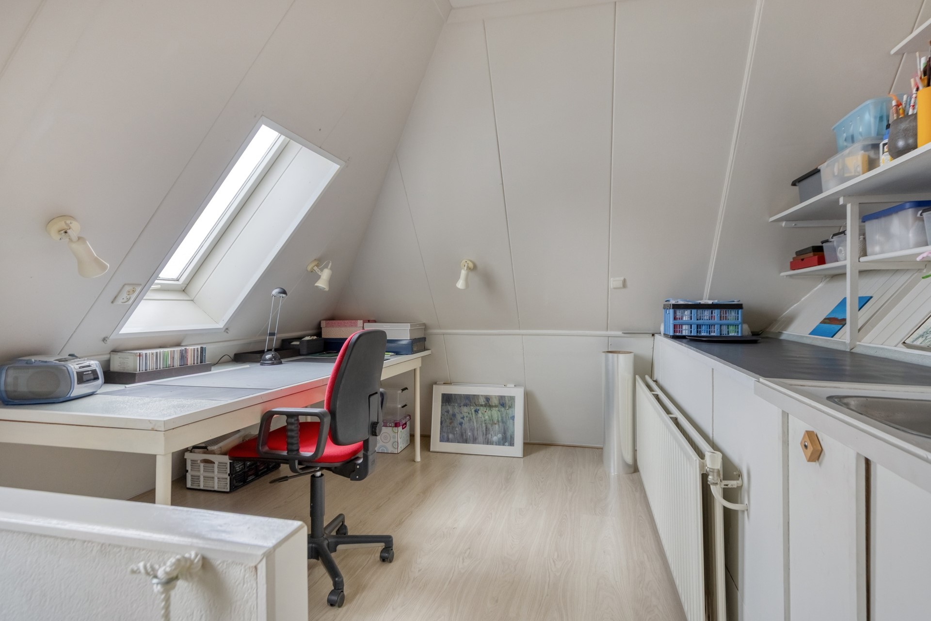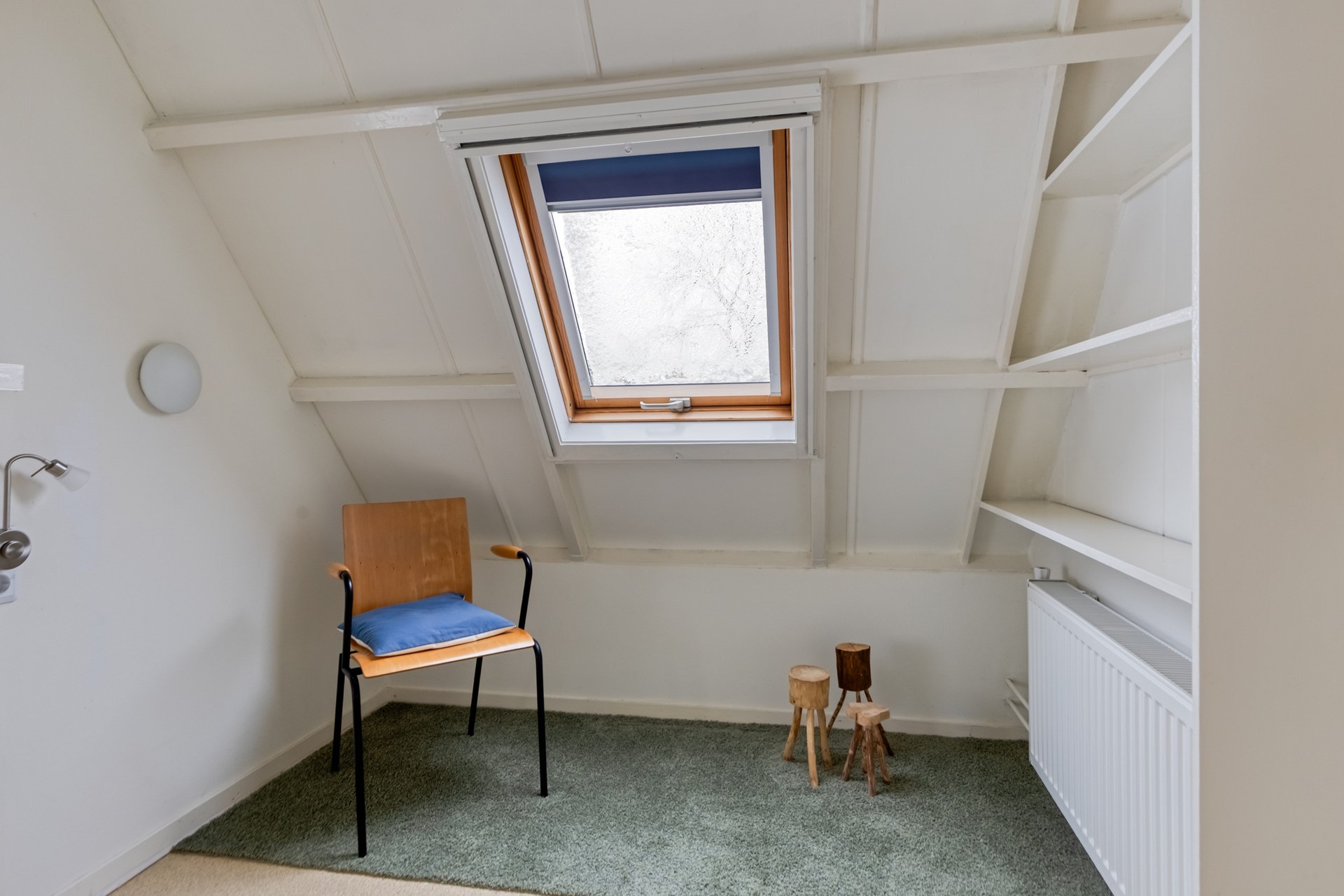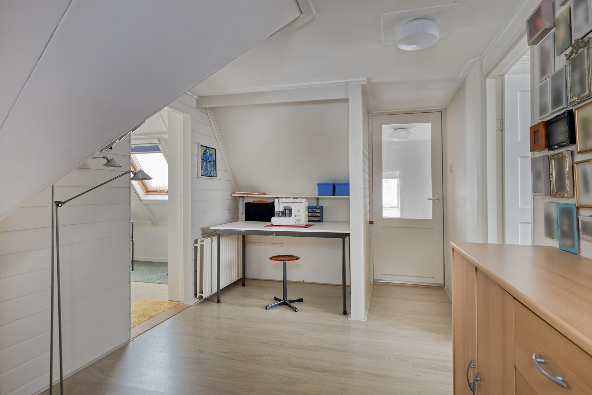Terug door de hal en woonkamer bereiken we de trap naar de eerste verdieping. We komen aan op de overloop welke tevens dienst doet als hobbyruimte en eenvoudig ingezet kan worden als kantoor (ca 8m2). Door de deur vervolgt de overloop zich na een opstapje met aan weerszijden twee slaapkamers (ca. 11m2 en 6m2).