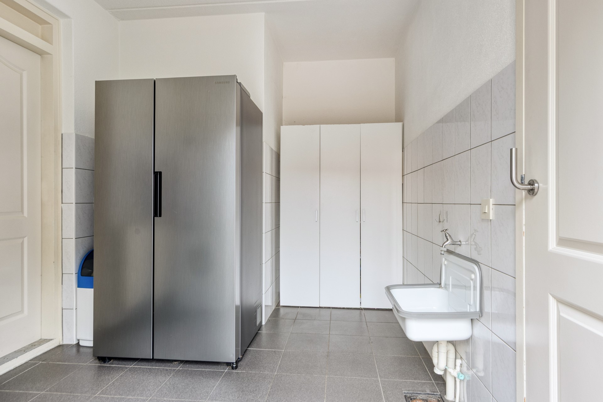 Aangrenzend aan de keuken tref je de ruime bijkeuken welke is voorzien van kraan met gootsteen en aansluitingen voor een was-droogopstelling.