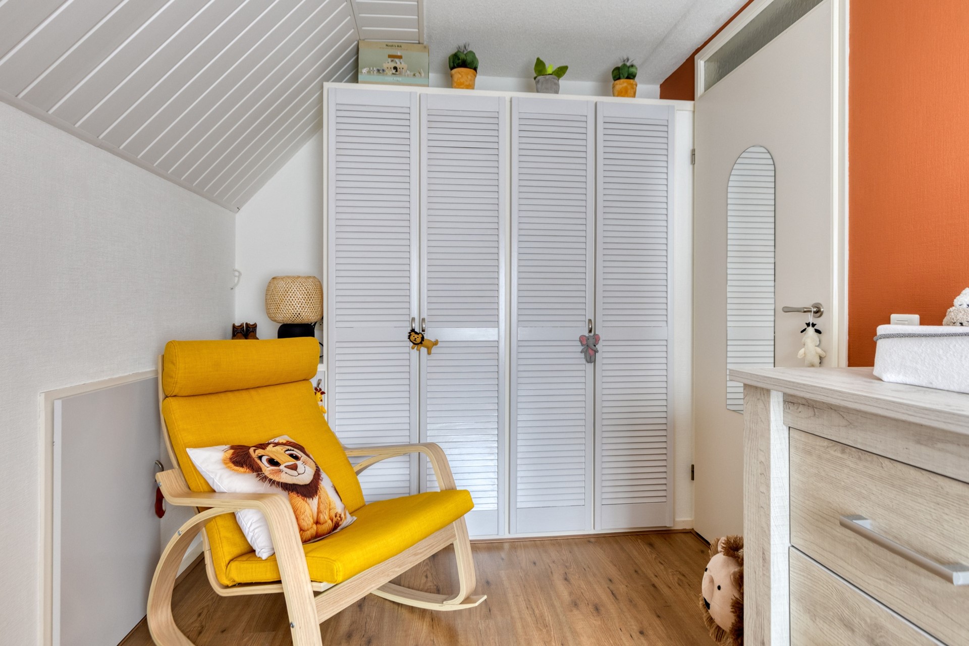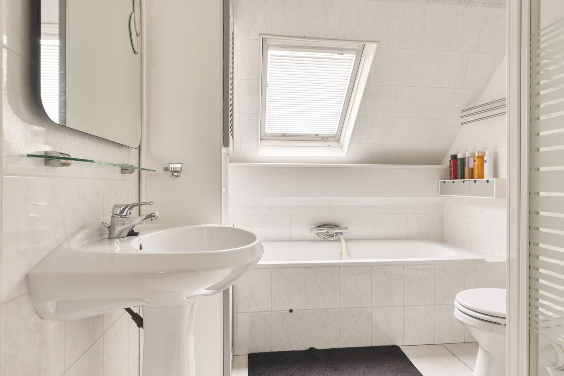 Eerste verdieping: overloop, 3 slaapkamers met laminaat vloeren, waarvan één slaapkamer met airco, nette badkamer voorzien van douchecabine, ligbad, wastafel, toilet, design radiator, dakvenster en mechanische ventilatie, via een vlizotrap kun je naar de bergzolder.
