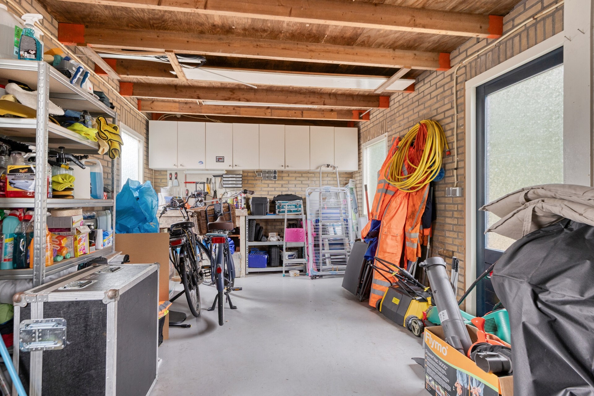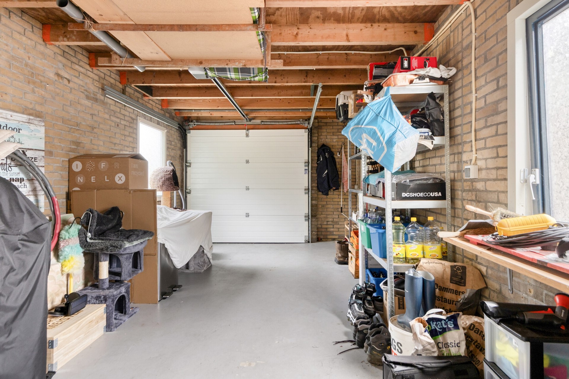 Via de bijkeuken loop je direct door naar de bijzonder ruim bemeten garage (3,28 x 9,68m !) met elektra en elektrische overhead deur.